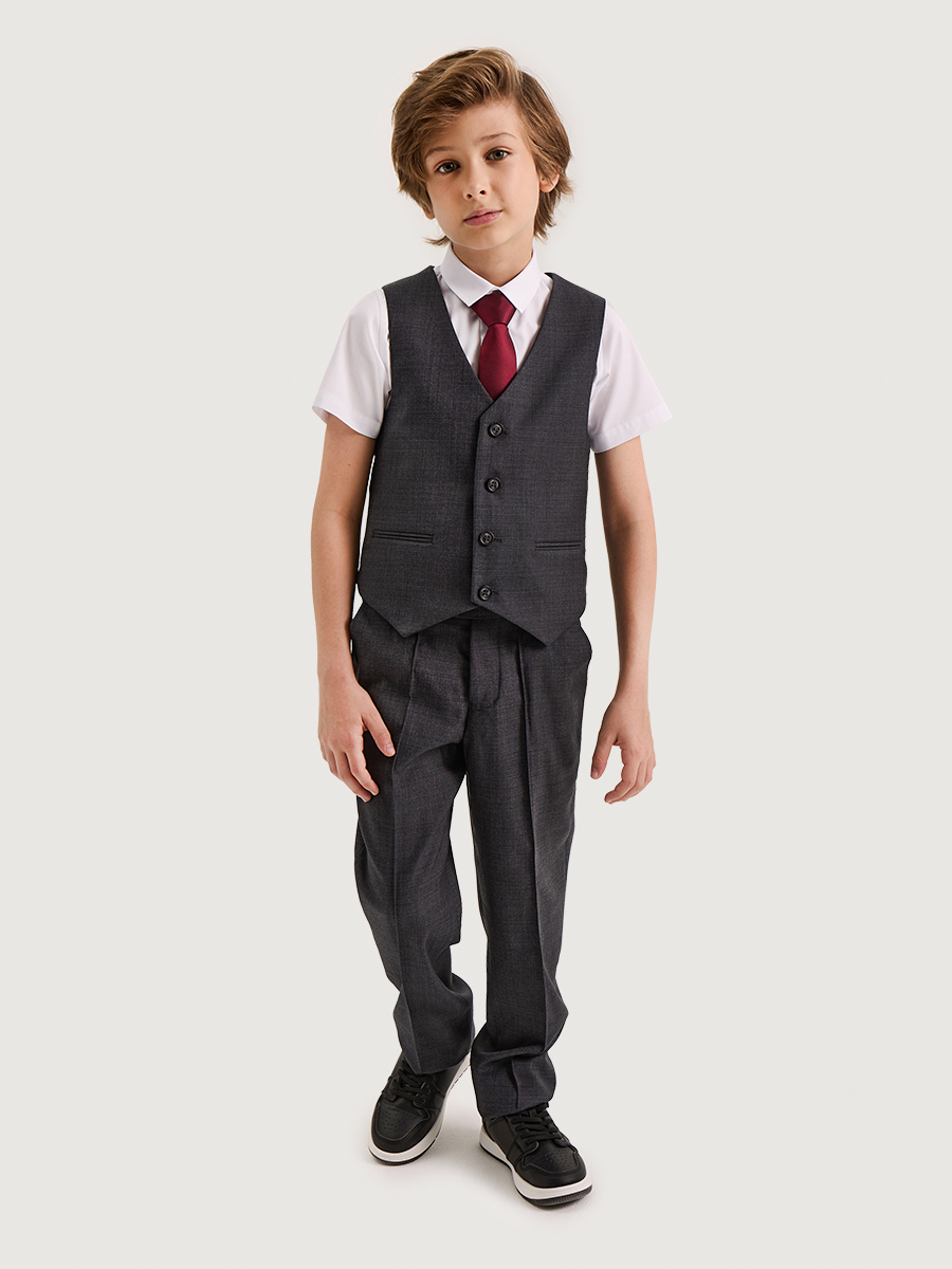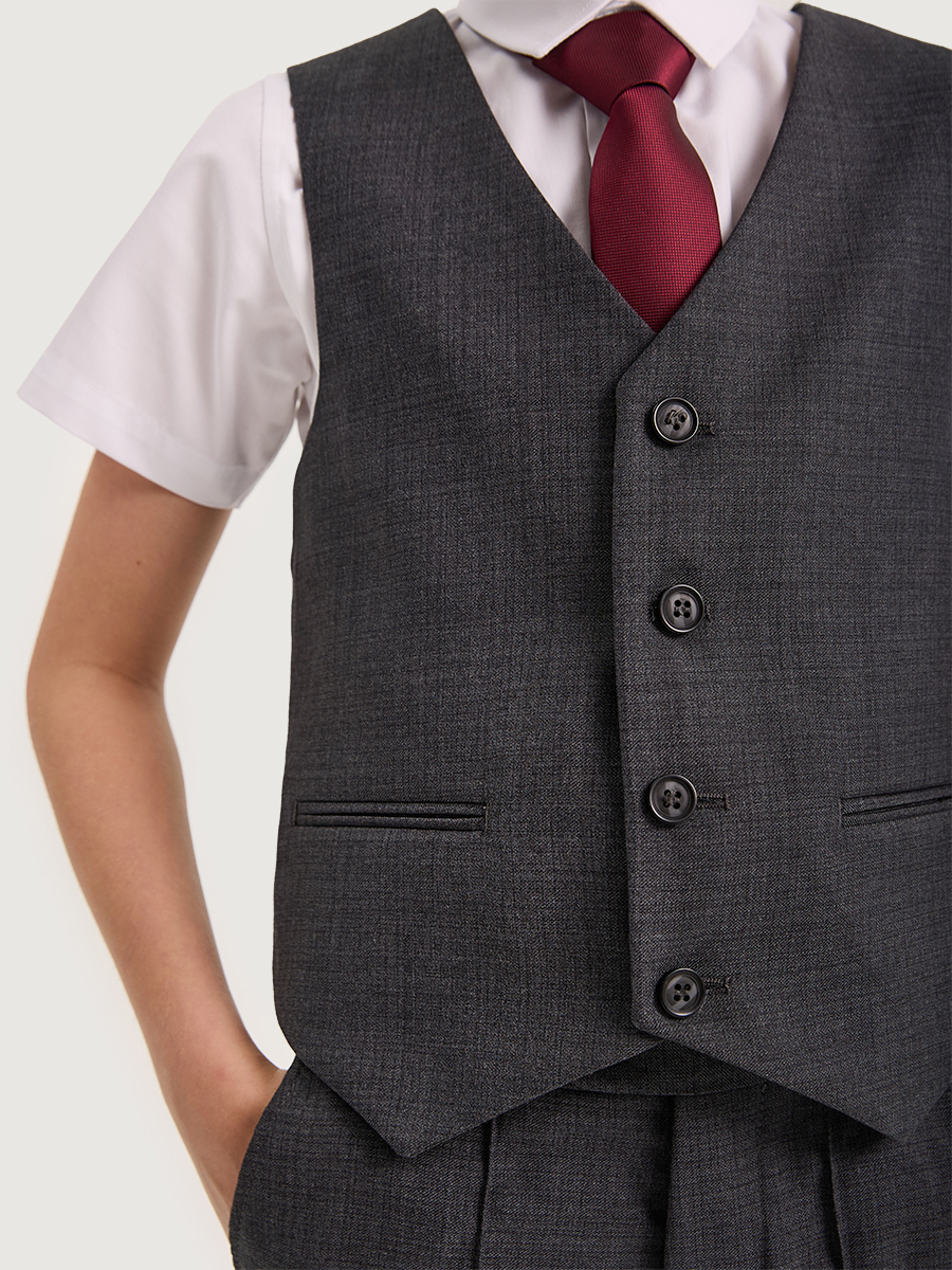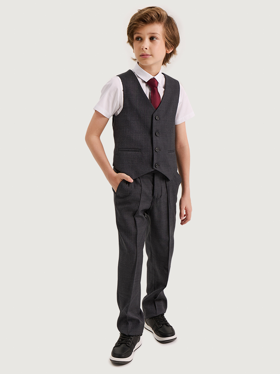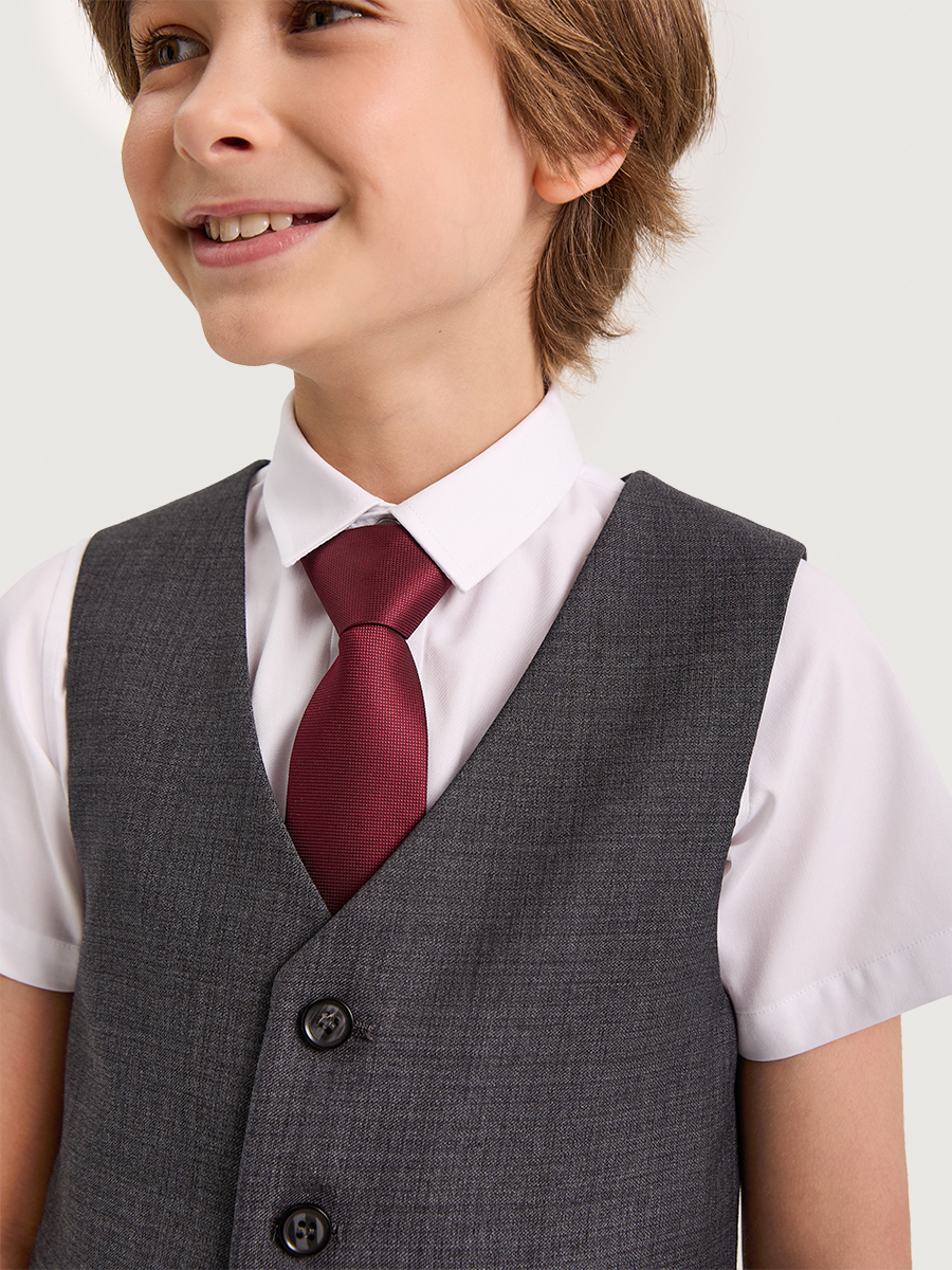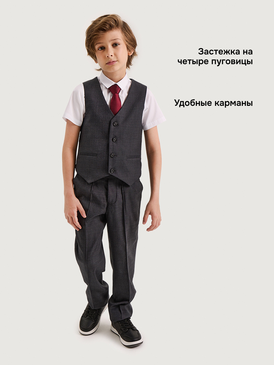 Модель на подкладке, полуприлегающего силуэта. Вырез горловины V-образный. Подходит для повседневной носки, а также на школьные мероприятия и выступления — это универсальная вещь.