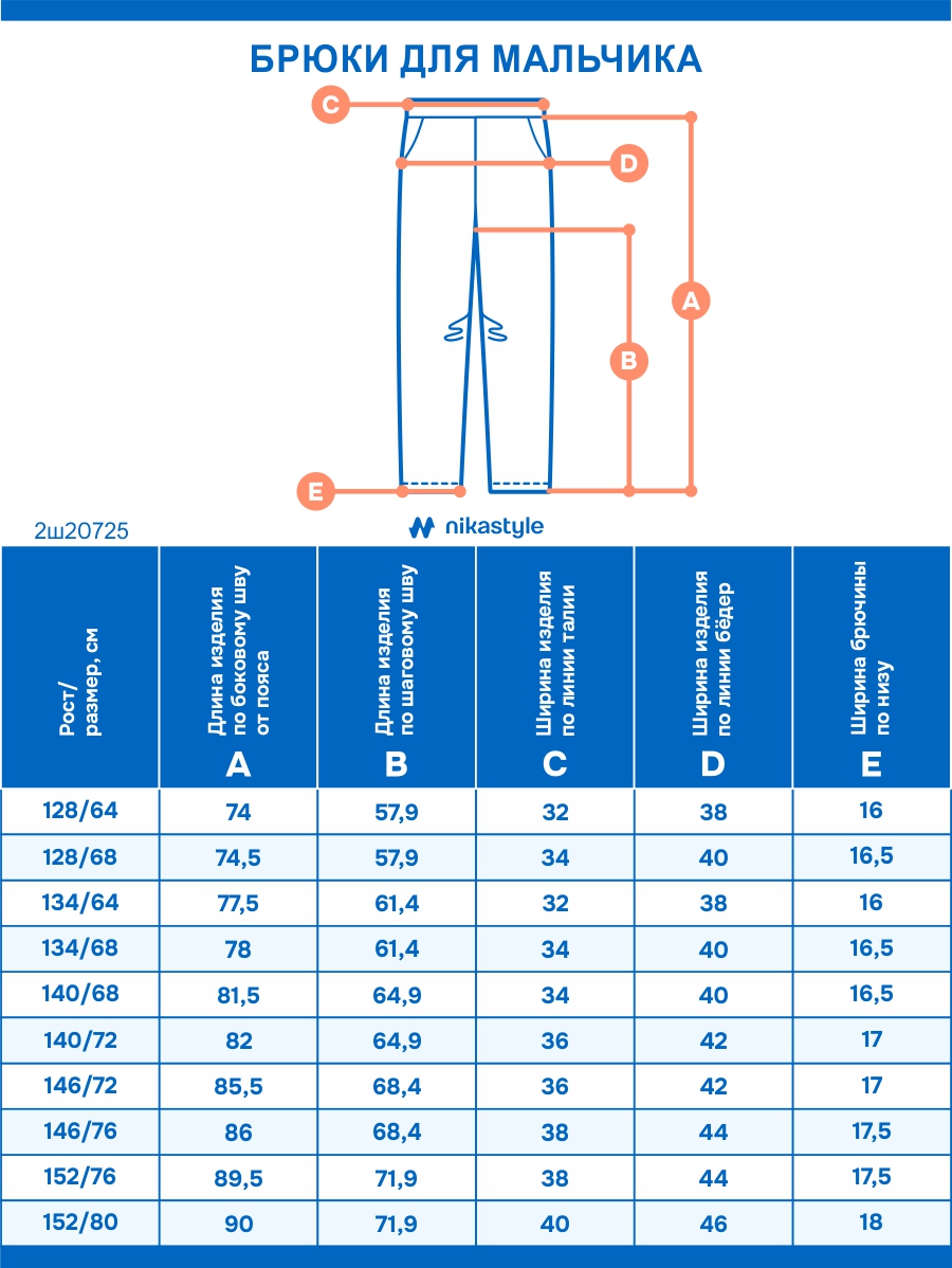 Размеры (брюки ШФ)—128-64