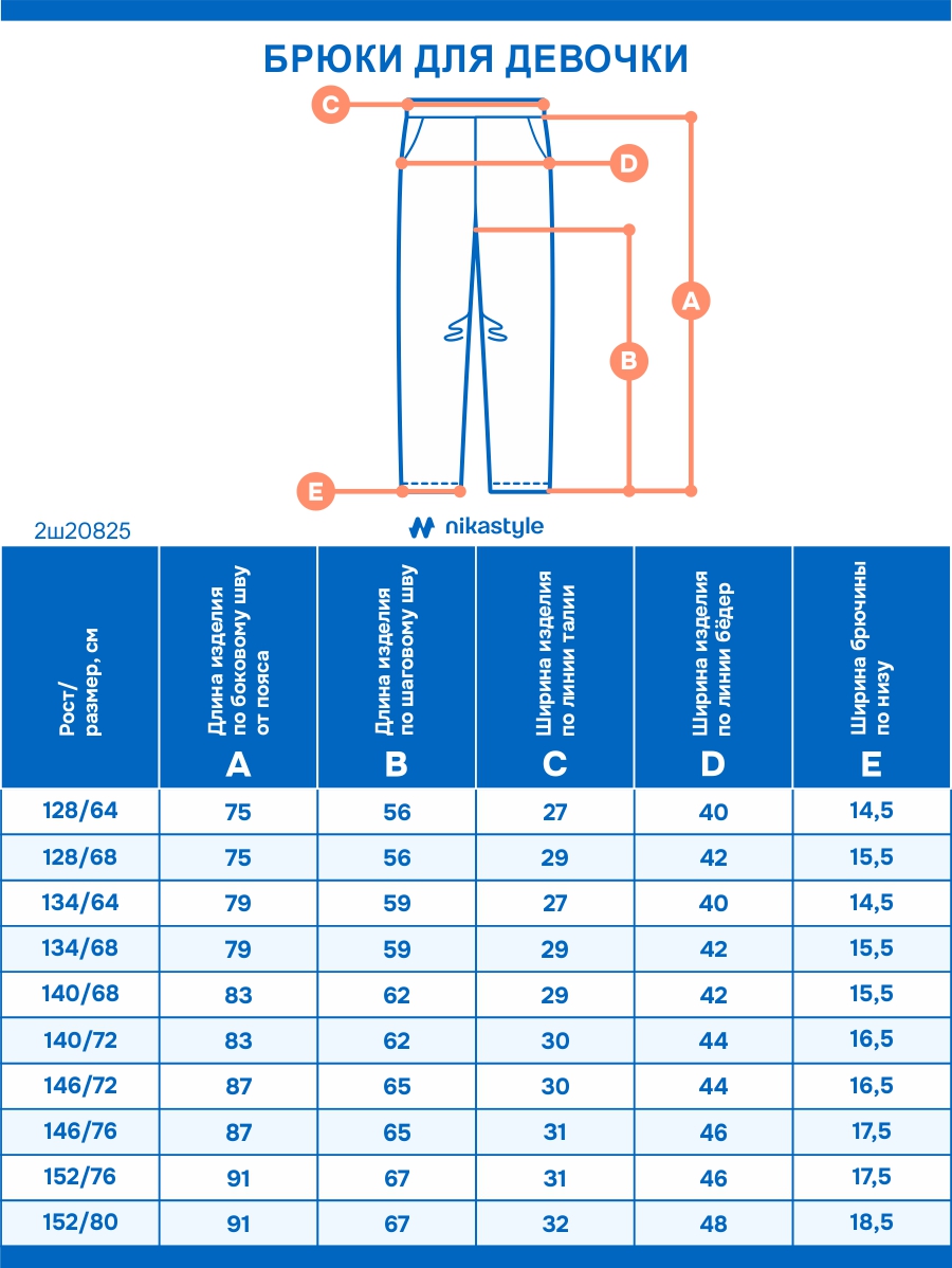 Брюки представлены в каждом росте двумя размерами.