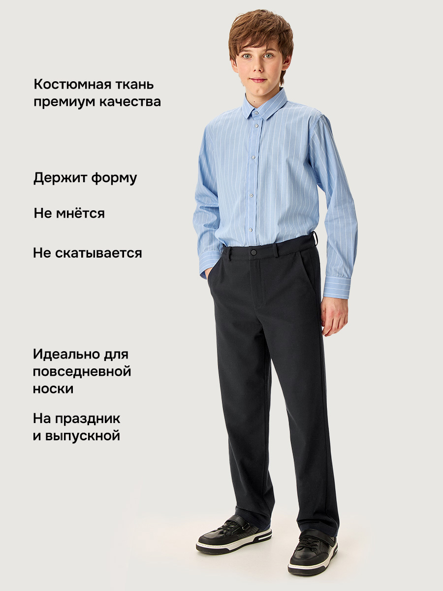 Брюки для мальчика, который ценит комфорт и стиль. Прочная, качественная костюмная ткань с содержанием вискозы и добавлением эластана не мнется и обеспечивает удобство при носке.
