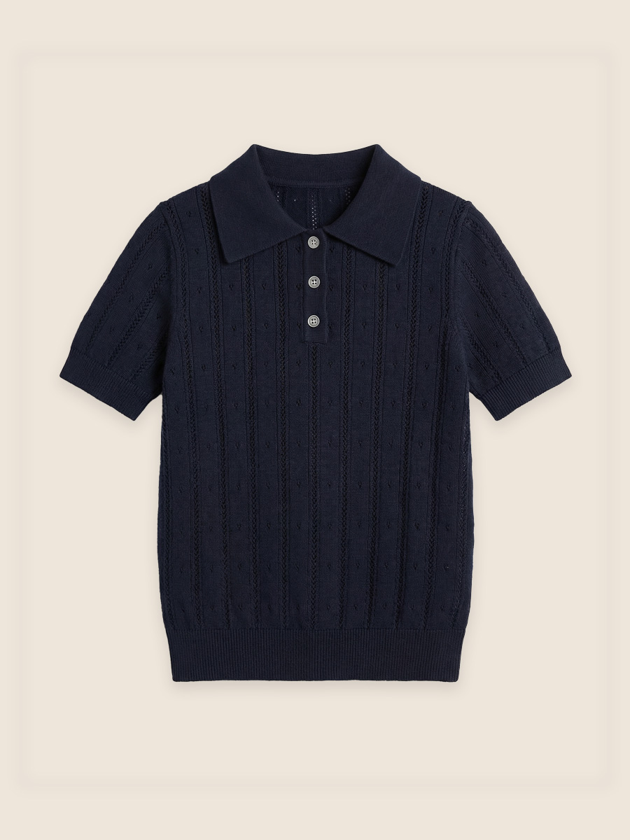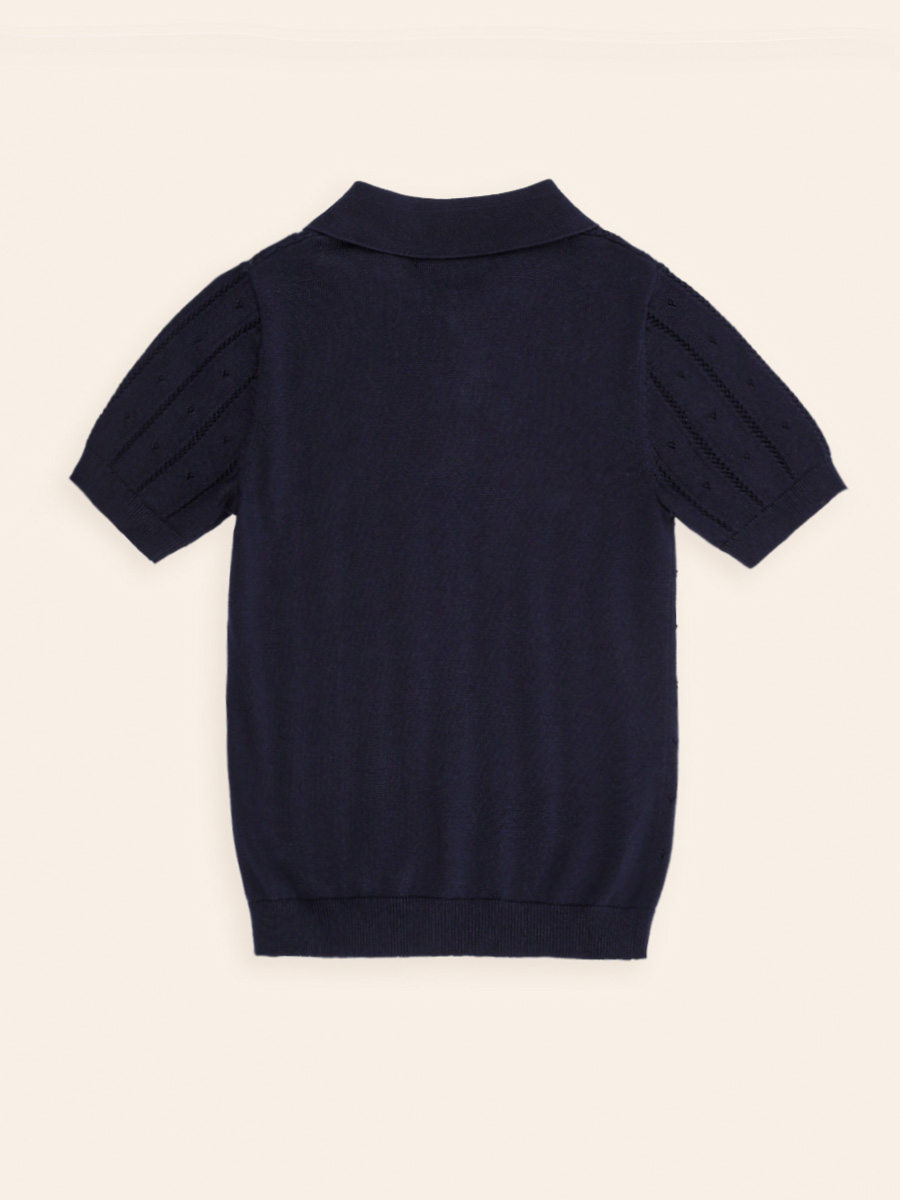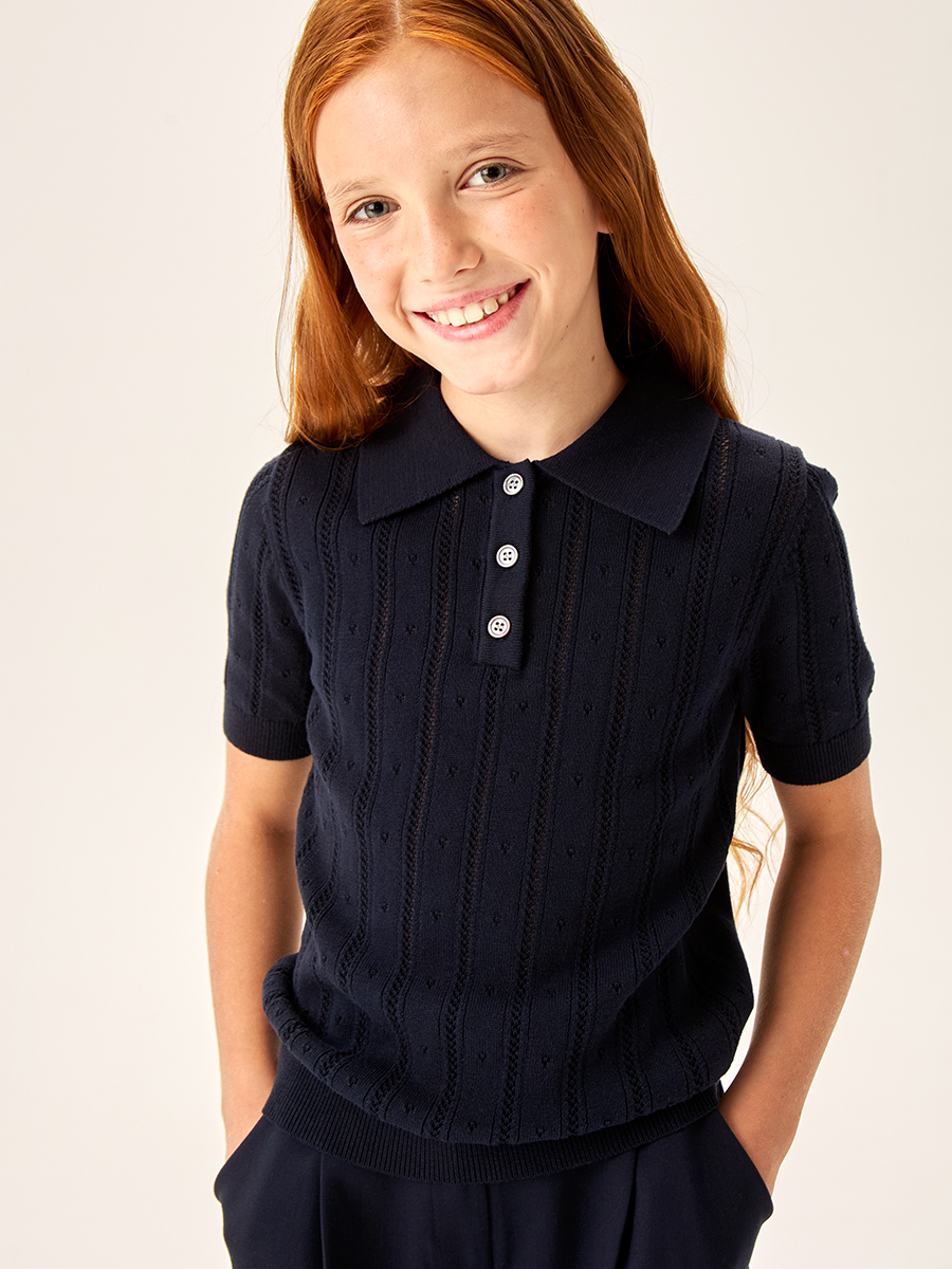 вязаный джемпер с воротником поло для девочки сочетает в себе стильный дизайн и максимальный комфорт для ребенка. Изготовлен из мягкого хлопка, что обеспечивает комфорт в течение всего дня.