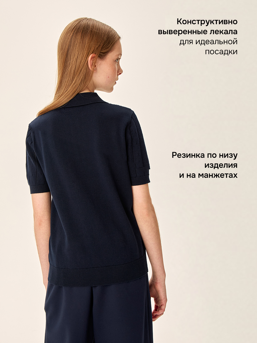 Классический воротник придает изделию элегантность, изюминкой модели является эффектная фактурная вязка.
