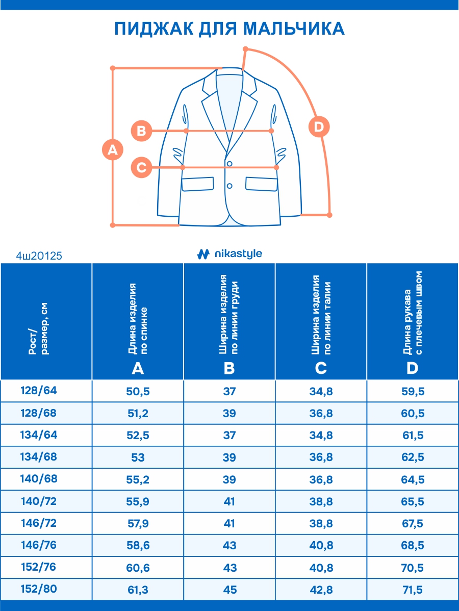 Размеры (пиджак ШФ)—128-64