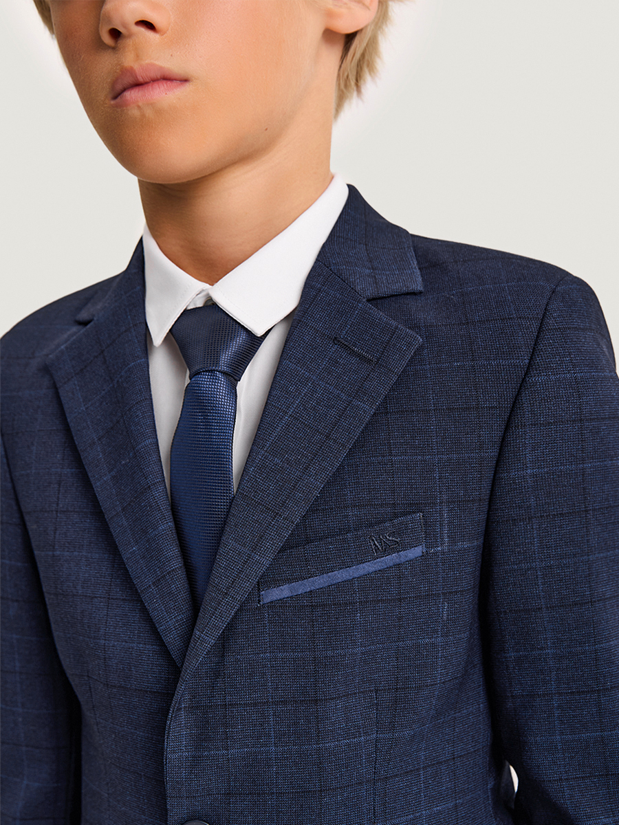 Мы все продумали до мелочей поэтому застежка на две пуговицы и шлица сзади делают пиджак более удобным в использовании. Пиджак можно носить самостоятельно или собрать костюм тройку из нашей школьной коллекции, дополнив образ брюками и жилетом. Такой комплект будет идеальным выбором для школьной формы или на торжественное мероприятие.