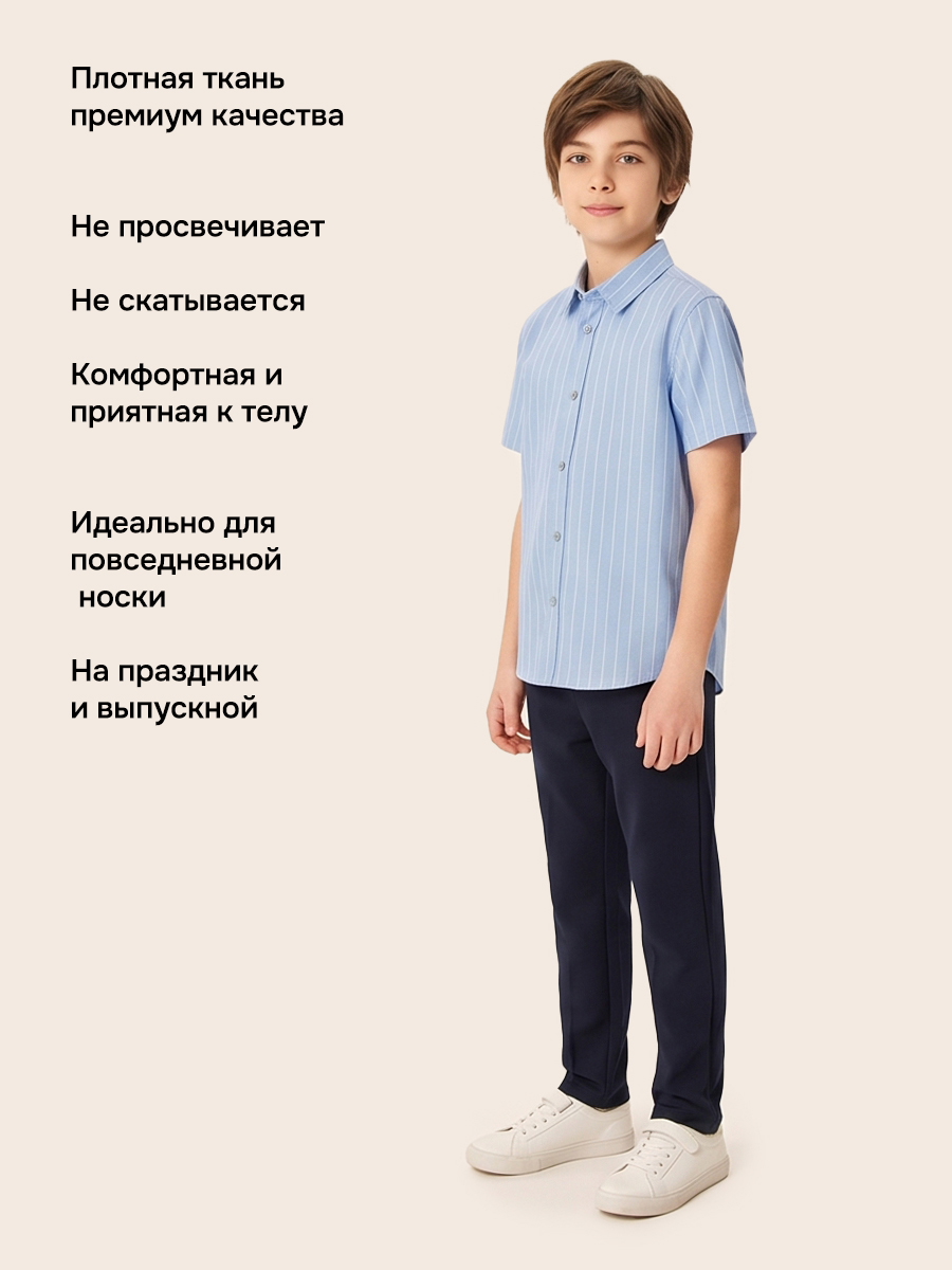 Классическая рубашка с коротким рукавом - базовый предмет гардероба для школьника. Приятный к телу хлопковый материал хорошо держит форму, обеспечивает мягкость, комфорт и воздухопроницаемость изделия.