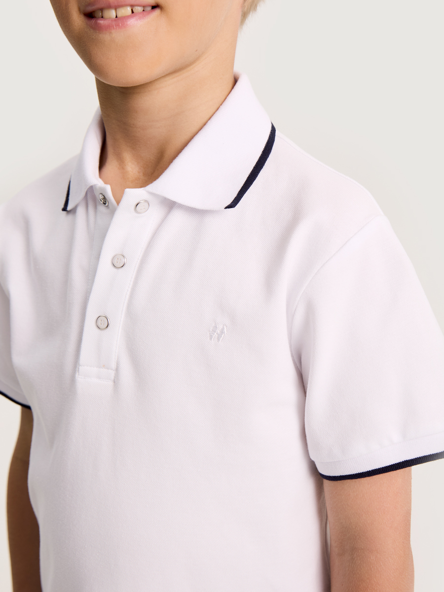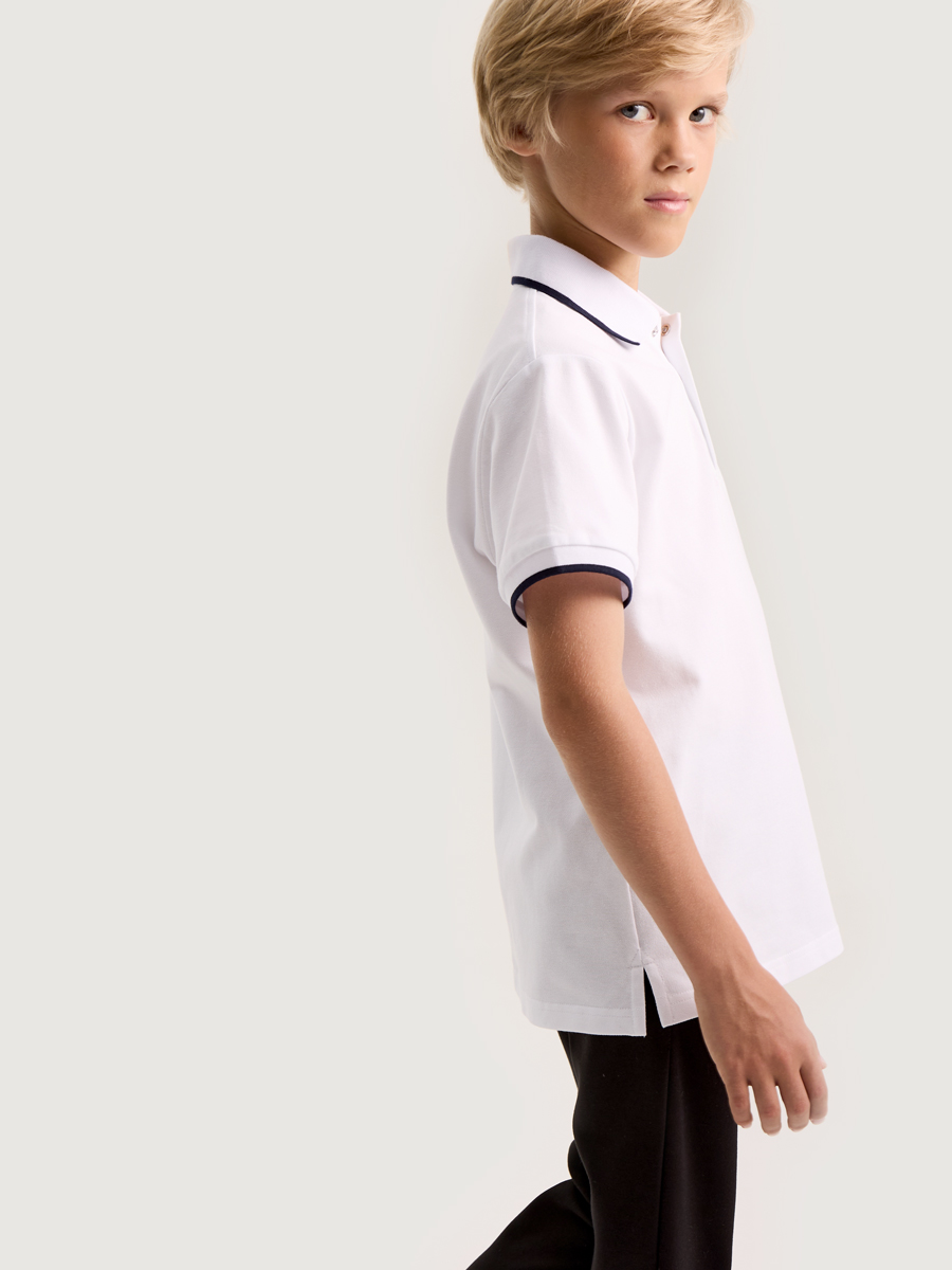 Рубашка с воротником поло для мальчика сочетает в себе стильный дизайн и максимальный комфорт для ребенка. Выполнена из дышащего, мягкого, эластичного хлопка.