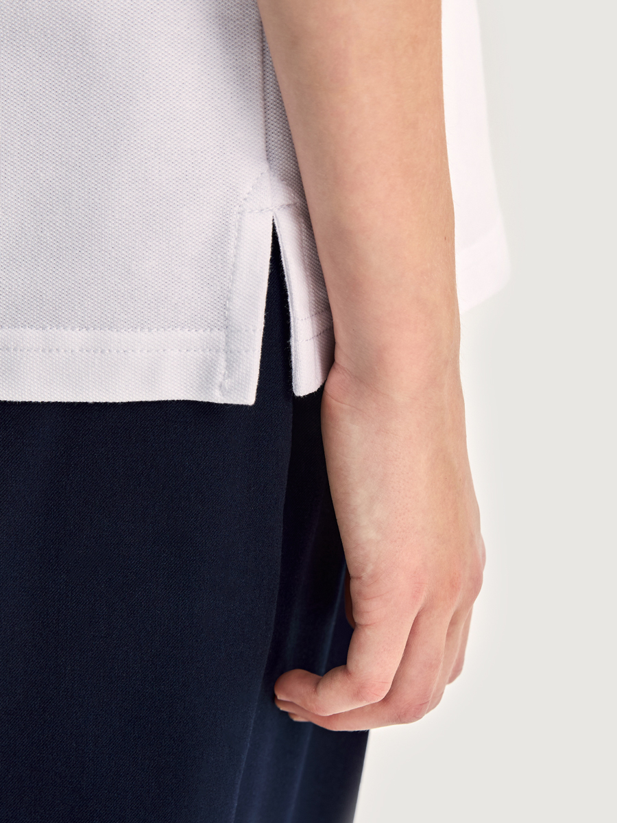 - короткие рукава с манжетами, разрезы по боковым швам позволяют носить поло на выпуск.