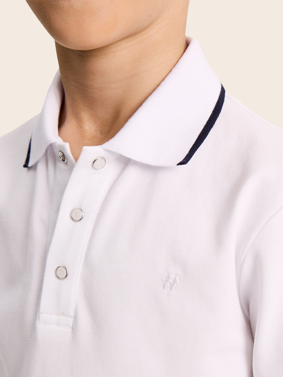 Рубашка с воротником поло для мальчика сочетает в себе стильный дизайн и максимальный комфорт для ребенка. Выполнена из дышащего, мягкого, эластичного хлопка.