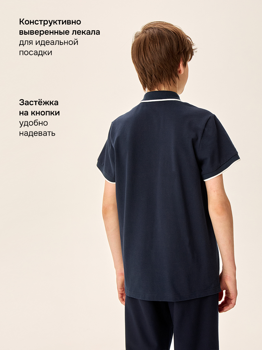 Рубашка с воротником поло для мальчика сочетает в себе стильный дизайн и максимальный комфорт для ребенка. Выполнена из дышащего, мягкого, эластичного хлопка.
