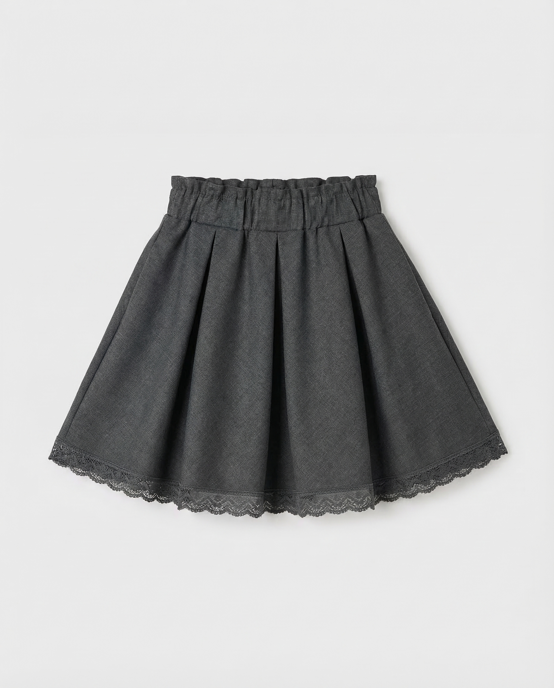 Мы все продумали до мелочей, поэтому верхняя часть пояса с имитацией оборки, нижний край юбки украшен притачным кружевом.