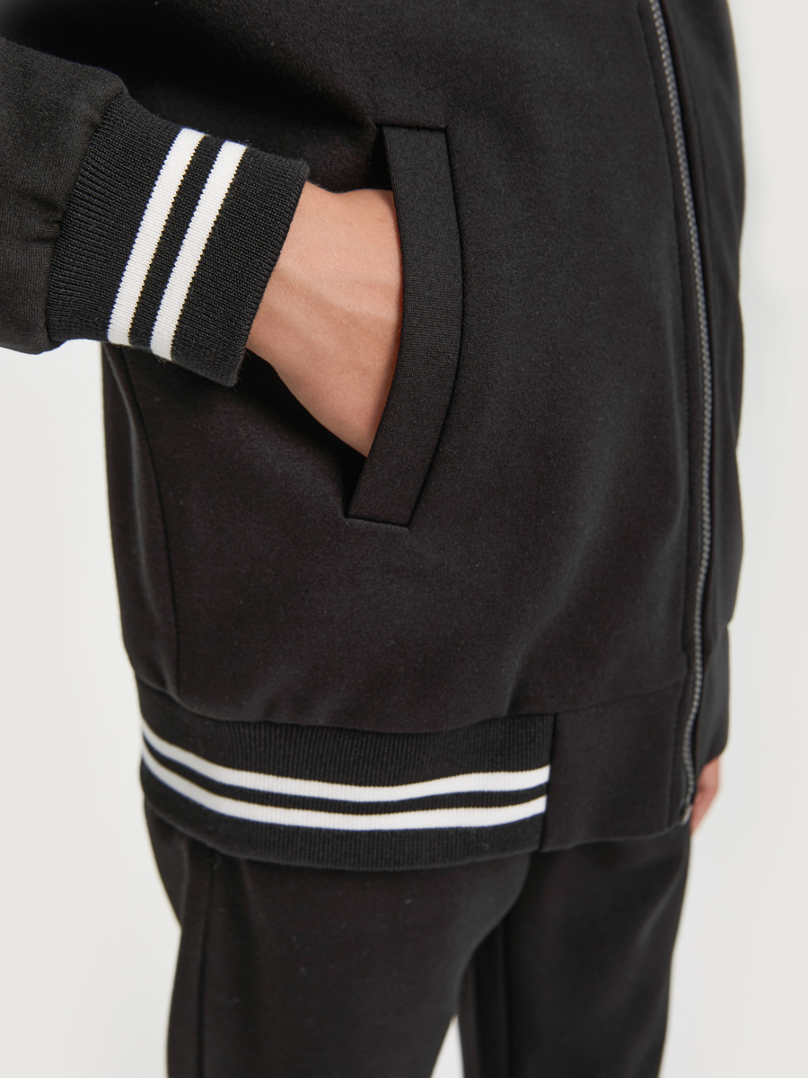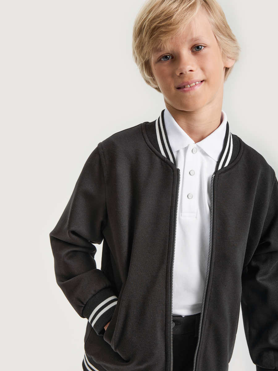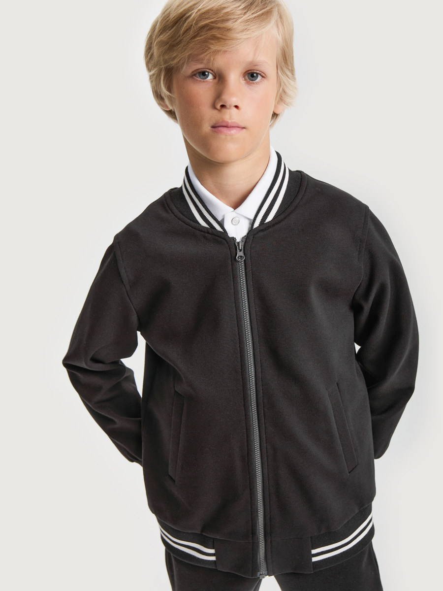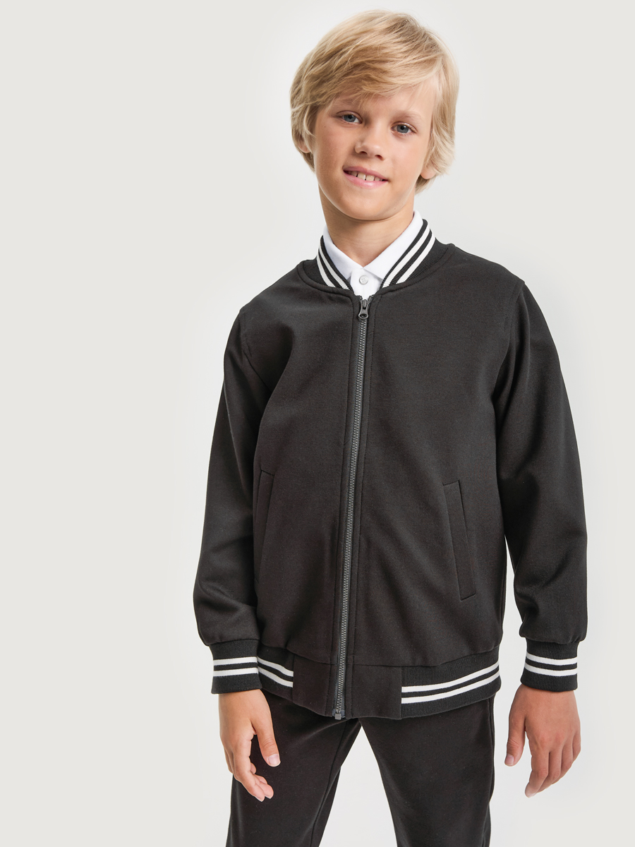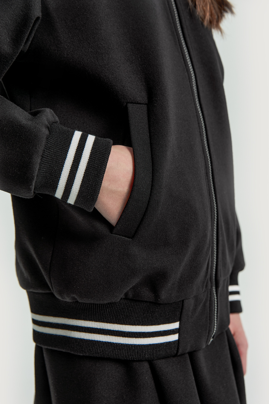 Бомбер можно носить самостоятельно или собрать костюм из нашей школьной коллекции, дополнив образ брюками или юбкой-шортами. Такой комплект будет идеальным выбором для школьной формы.
