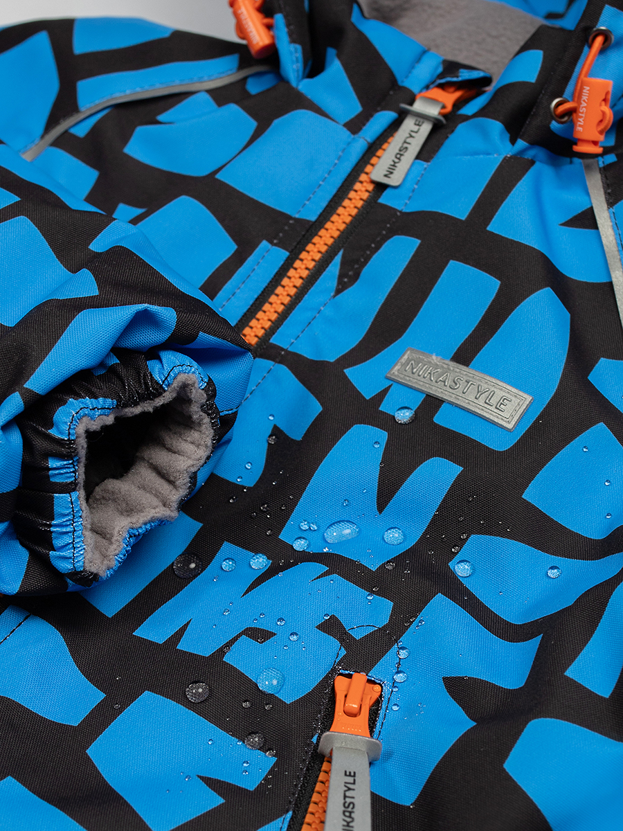 Мембранная ткань это непродуваемый и водонепроницаемый материал, который надежно защищает от ветра и влаги. Благодаря дышащим свойствам мембраны ребенку будет комфортно в любую погоду и он не вспотеет. Ткань обработана снаружи экологически чистым протектором TEFLON для защиты от воды и грязи.
