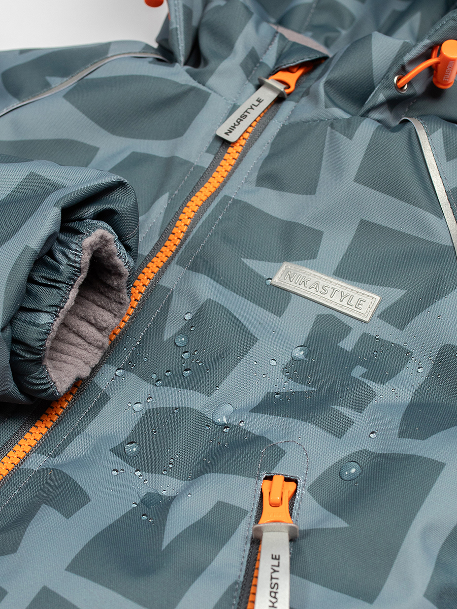 Мембранная ткань это непродуваемый и водонепроницаемый материал, который надежно защищает от ветра и влаги. Благодаря дышащим свойствам мембраны ребенку будет комфортно в любую погоду и он не вспотеет. Ткань обработана снаружи экологически чистым протектором TEFLON для защиты от воды и грязи.