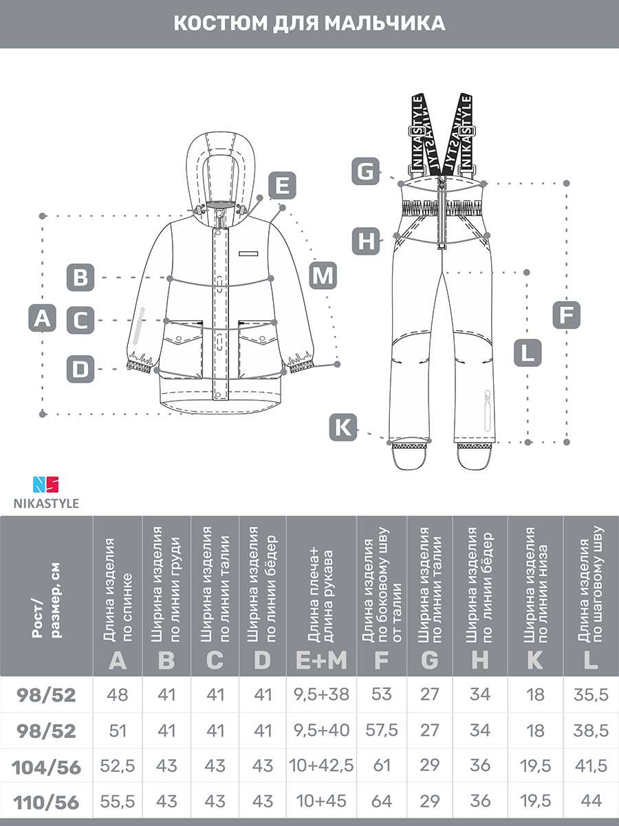 Костюм СКАНДИ с системой роста на один размер (длина рукавов и брючин увеличивается на 4-5см).