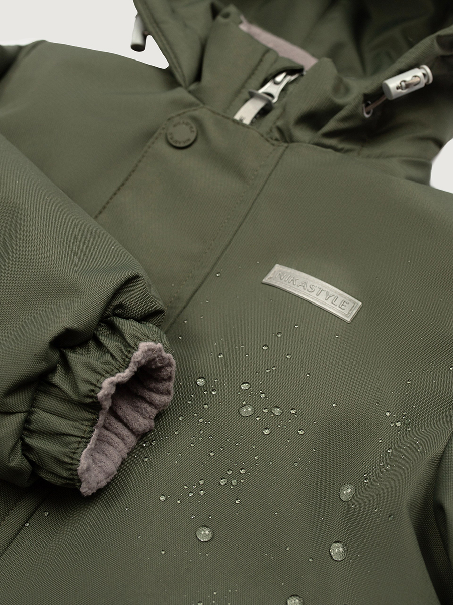Мембранная ткань это непродуваемый и водонепроницаемый материал, который надежно защищает от ветра и влаги. Благодаря дышащим свойствам мембраны ребенку будет комфортно в любую погоду и он не вспотеет. Ткань обработана снаружи экологически чистым протектором TEFLON для защиты от воды и грязи.