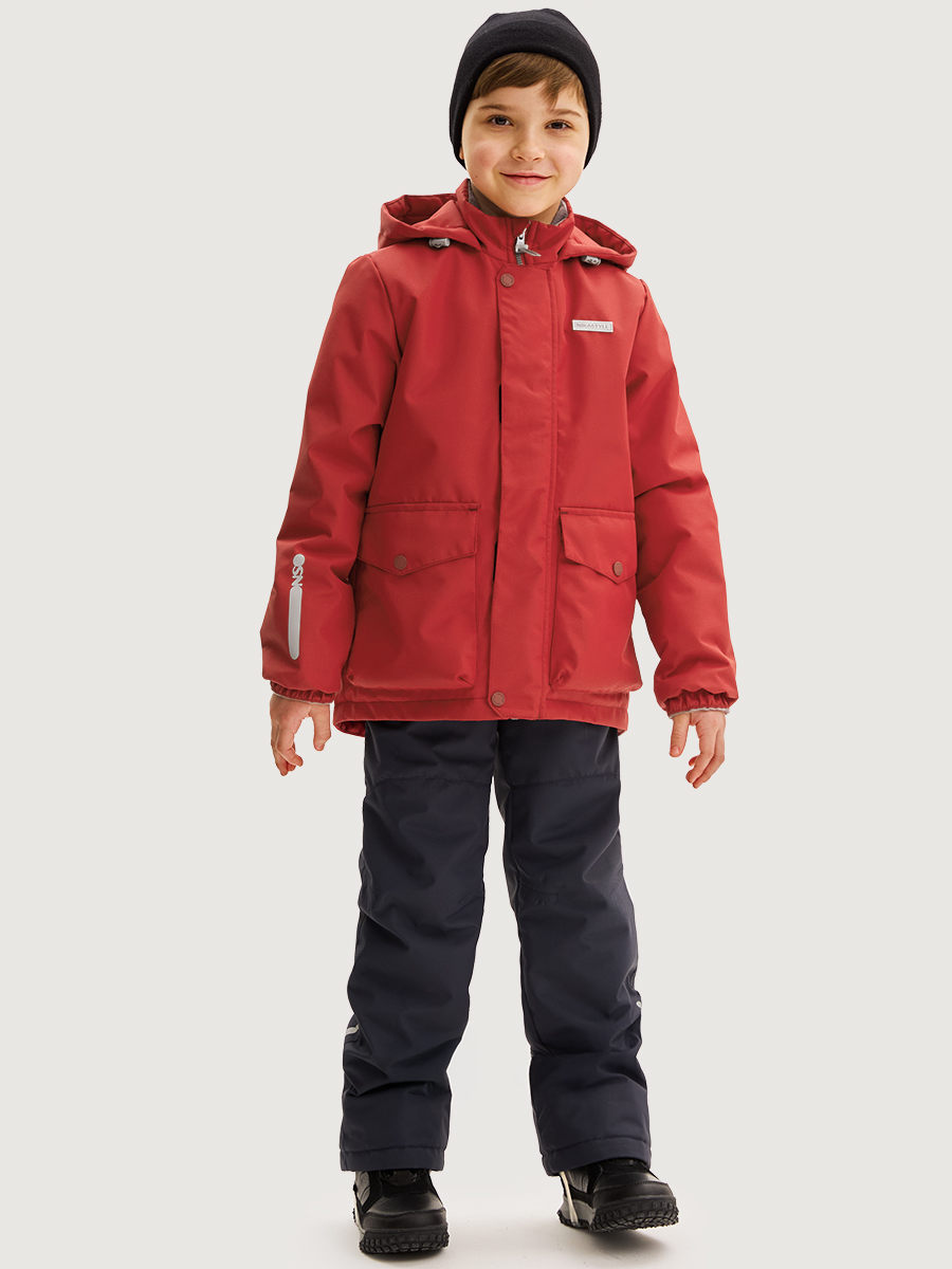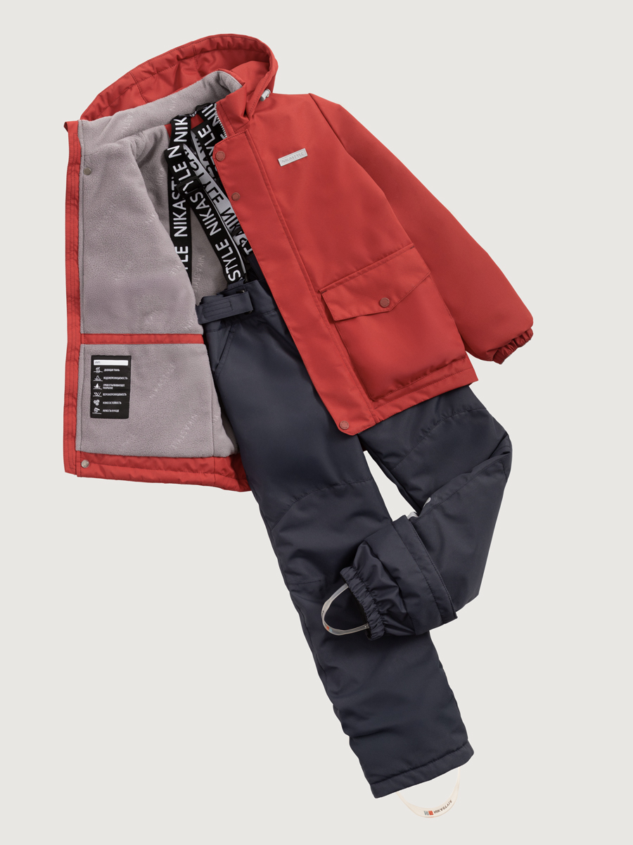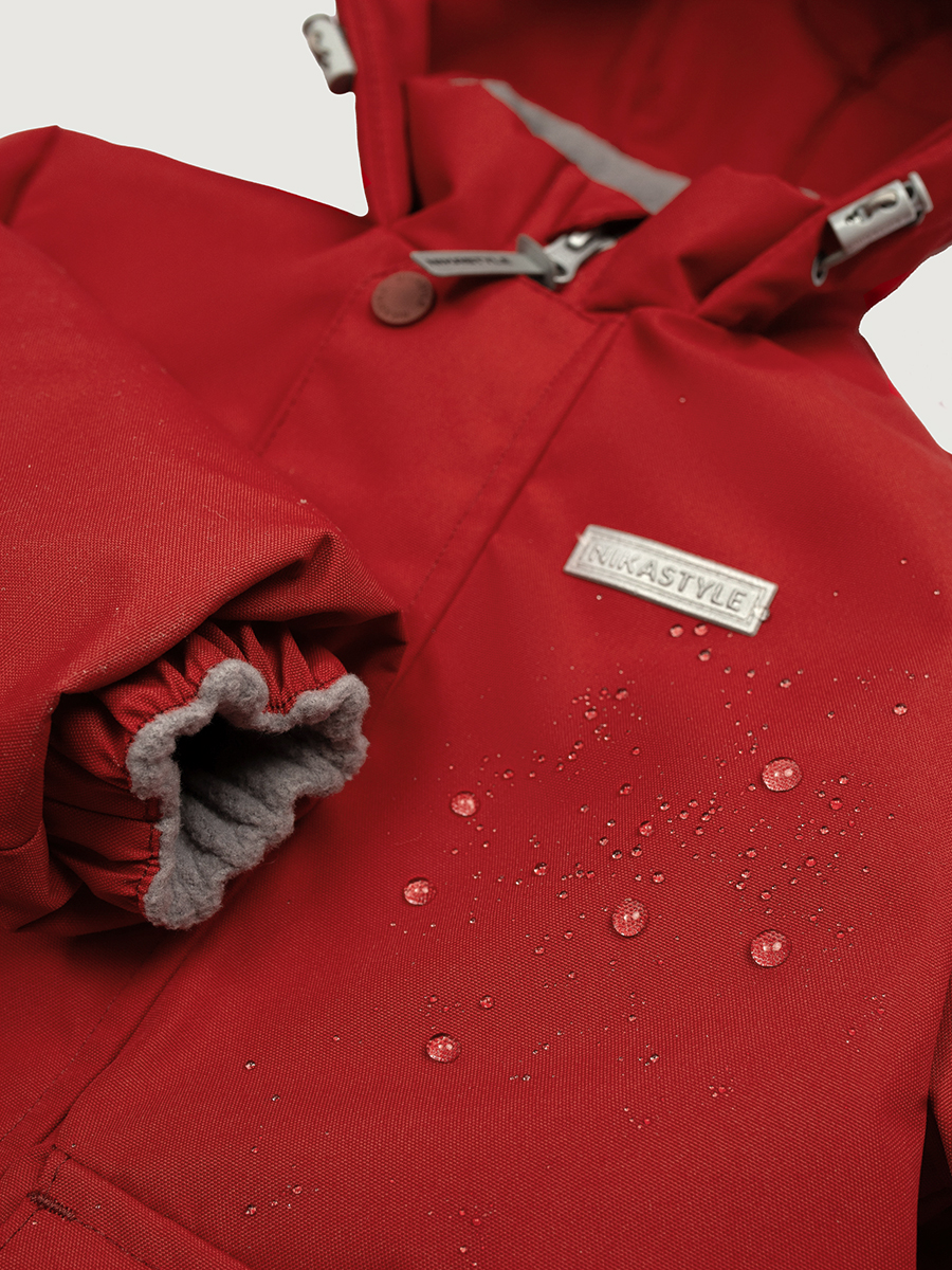 Мембранная ткань это непродуваемый и водонепроницаемый материал, который надежно защищает от ветра и влаги. Благодаря дышащим свойствам мембраны ребенку будет комфортно в любую погоду и он не вспотеет. Ткань обработана снаружи экологически чистым протектором TEFLON для защиты от воды и грязи.