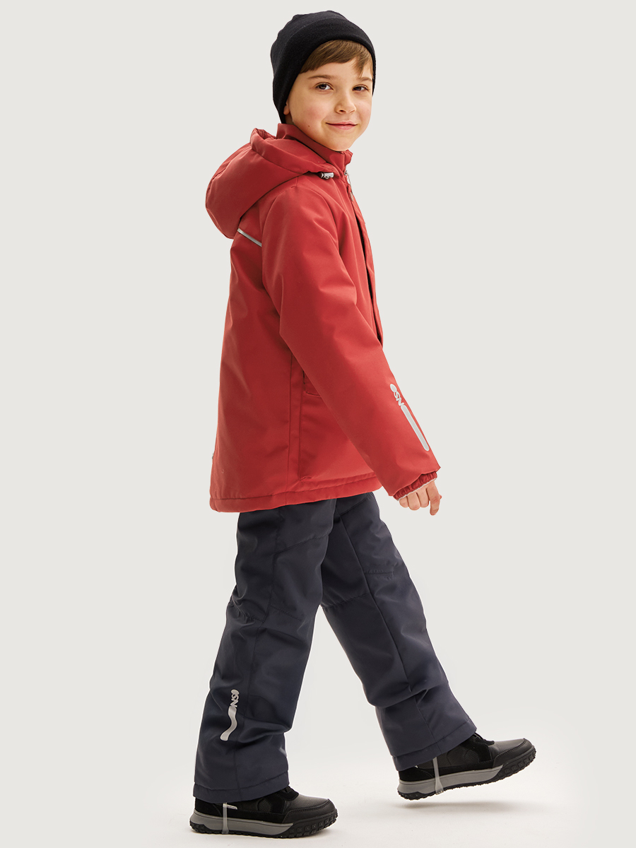 Мы все продумали до мелочей, поэтому брюки оснащены регулируемыми, съемными бретелями, с дополнительной регулировкой объема по талии, с удобными карманами, снегозащитными муфтами, силиконовыми штрипками, область колен и шов сидения проклеены, предусмотрены светоотражающие элементы для безопасности ребенка в темное время суток.