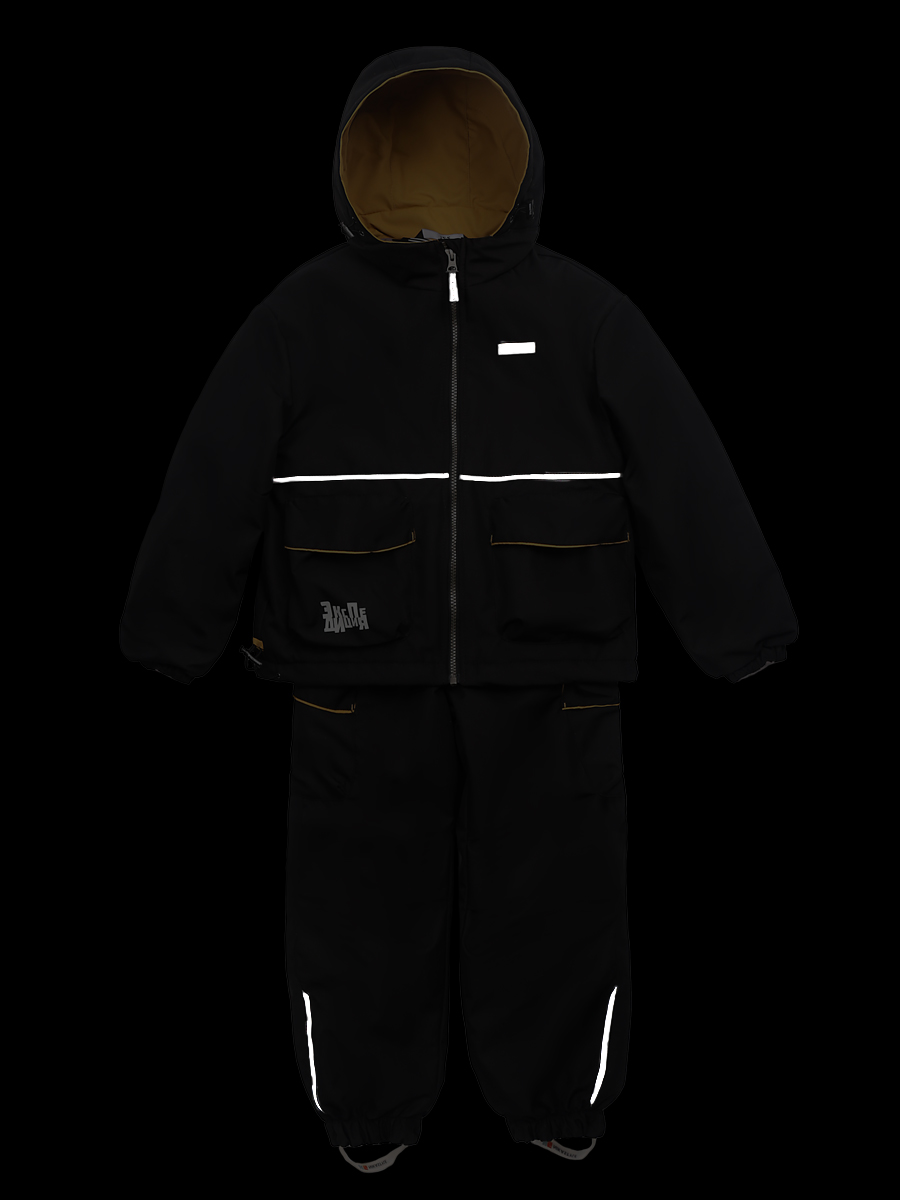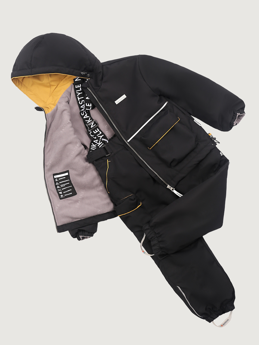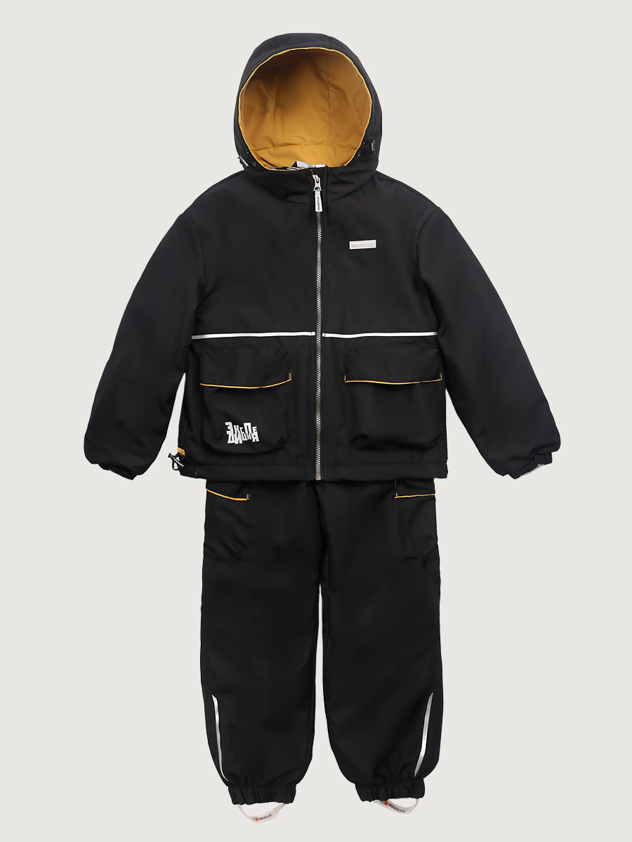 Костюм в силе «карго» из мембранной ткани 5000/5000 с водо- грязеотталкивающей технологией TEFLON. Мембранная ткань это непродуваемый и водонепроницаемый материал, который надежно защищает от ветра и влаги. Благодаря дышащим свойствам мембраны ребенку будет комфортно в любую погоду и он не вспотеет. Ткань обработана снаружи экологически чистым протектором TEFLON для защиты от воды и грязи.