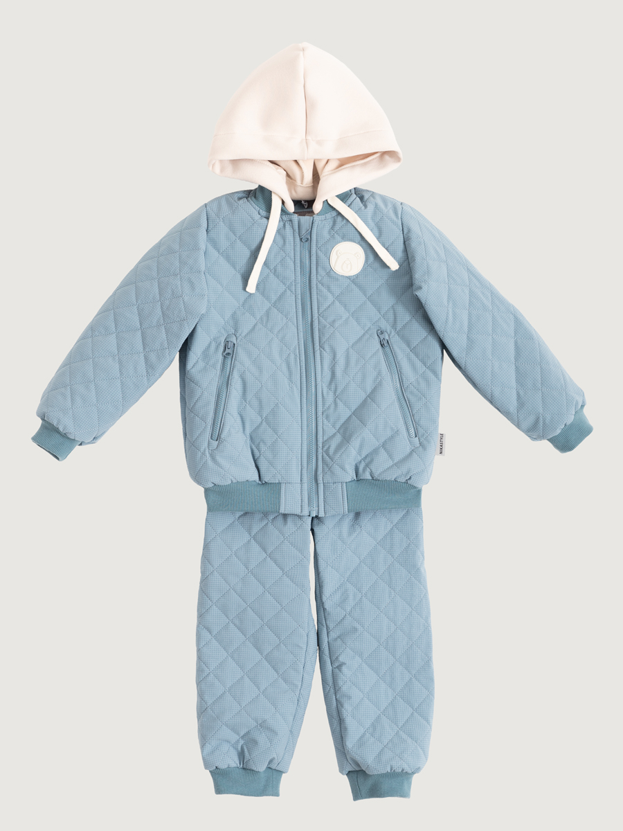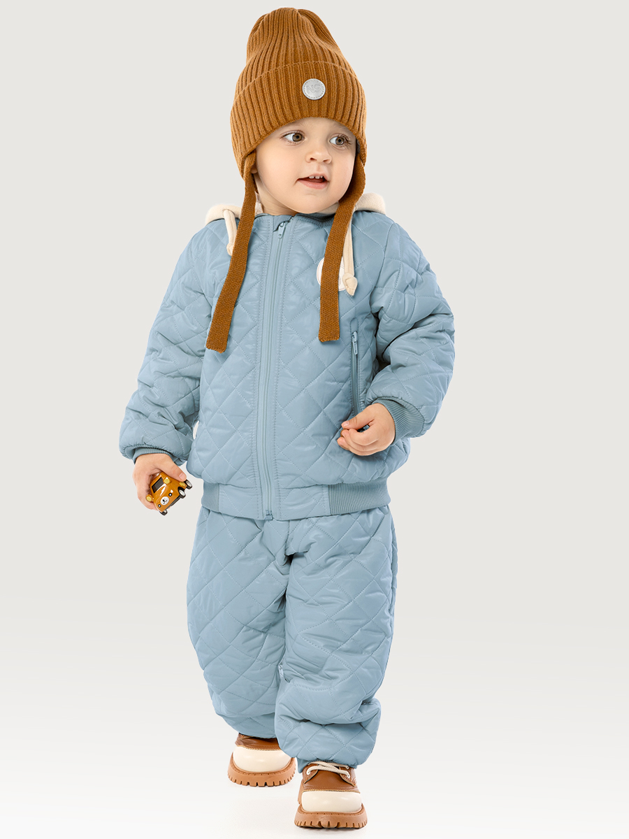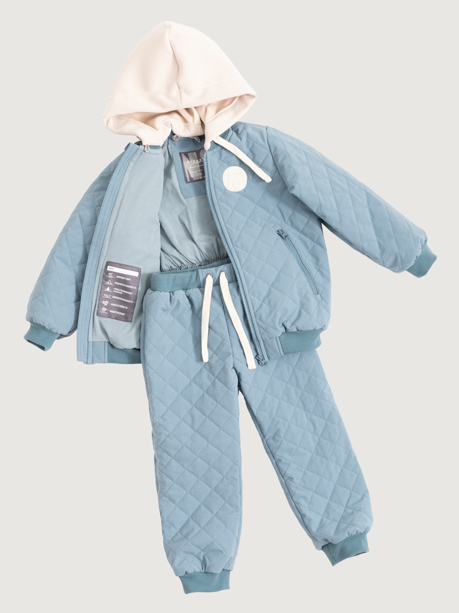 Стеганый костюм для самых маленьких УМКА из мембранной ткани 3000/3000 с водо- грязеотталкивающей технологией. Мембранная ткань это непродуваемый и водонепроницаемый материал, который надежно защищает от ветра и влаги. Благодаря дышащим свойствам мембраны ребенку будет комфортно в любую погоду и он не вспотеет. Мембранная ткань в сочетании с утеплителем нового поколения FIBERlite сохраняет тепло во время прогулок, позволяя телу дышать. Хлопковая подкладка обеспечит повышенный комфорт для ребенка .