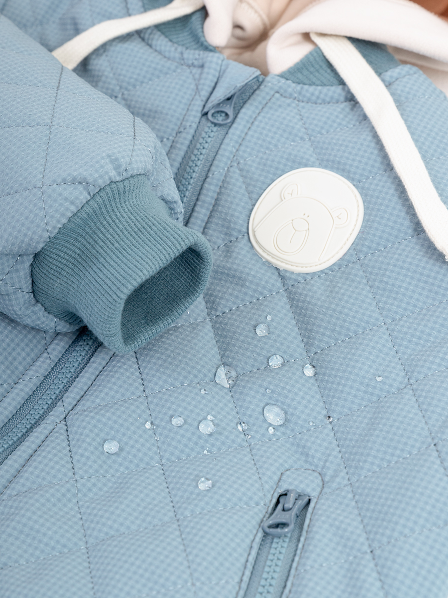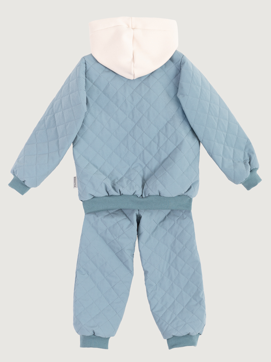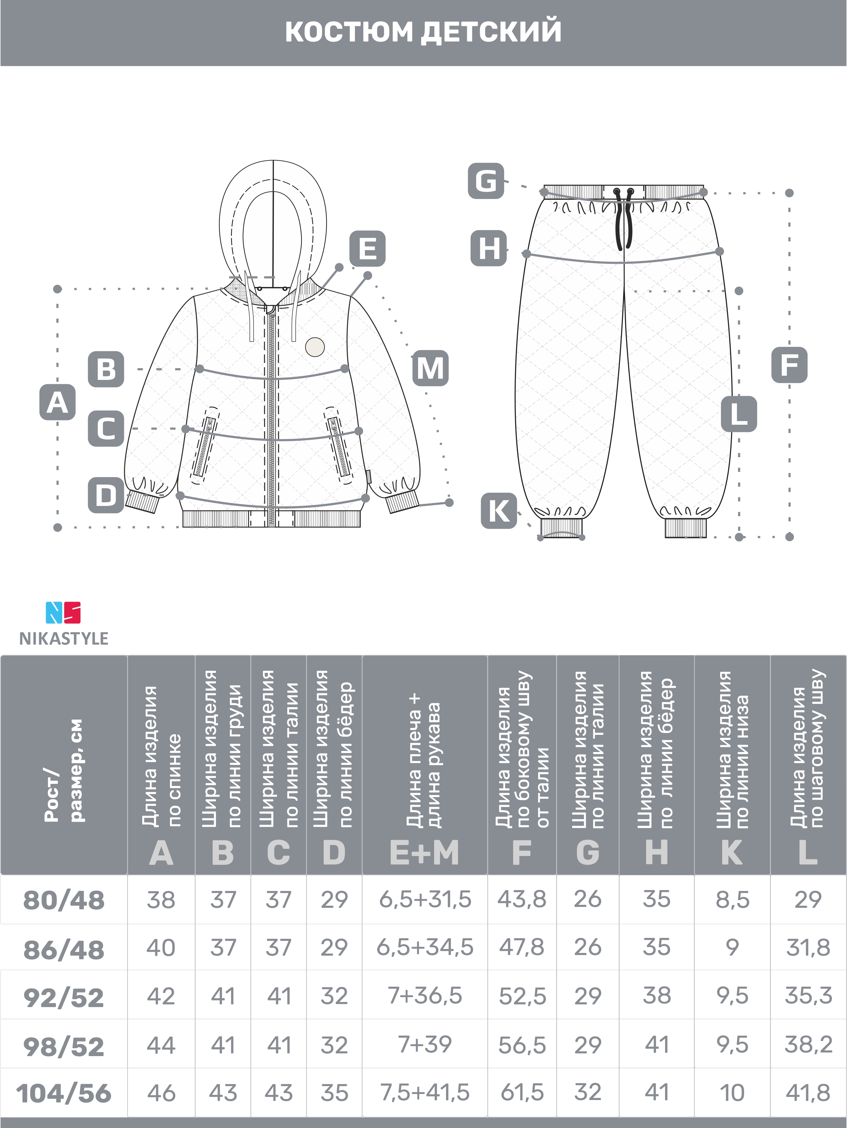 Стеганый костюм для самых маленьких УМКА из мембранной ткани 3000/3000 с водо- грязеотталкивающей технологией. Мембранная ткань это непродуваемый и водонепроницаемый материал, который надежно защищает от ветра и влаги. Благодаря дышащим свойствам мембраны ребенку будет комфортно в любую погоду и он не вспотеет. Мембранная ткань в сочетании с утеплителем нового поколения FIBERlite сохраняет тепло во время прогулок, позволяя телу дышать. Хлопковая подкладка обеспечит повышенный комфорт для ребенка .