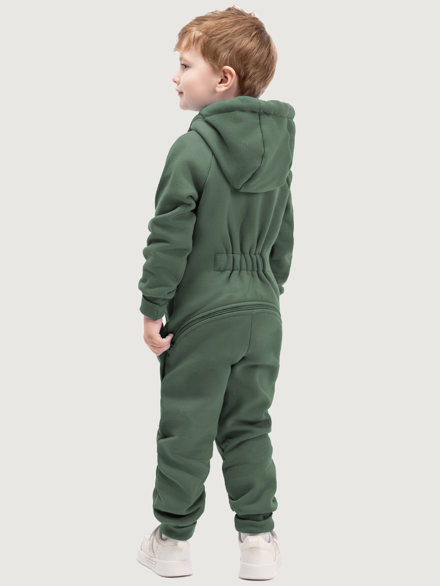 Комбинезон С КЛАПАНОМ из плотного хлопкового трикотажа с мягким стриженным начесом внутри. Модель с капюшоном, карманами на молнии. Удлиненные манжеты на рукавах и брюках из трикотажного полотна «кашкорсе» растут вместе с ребенком, надежно облегают запястье ребенка.