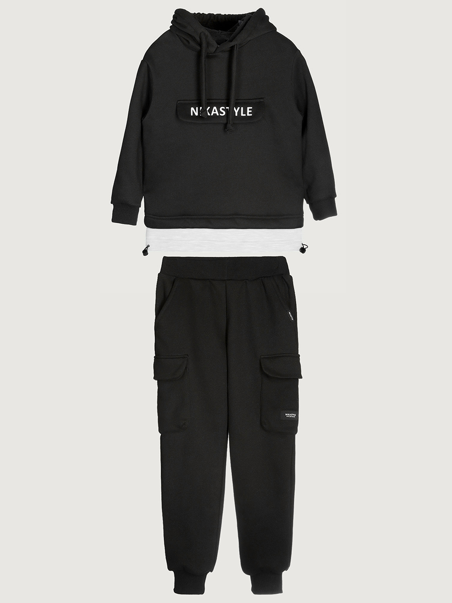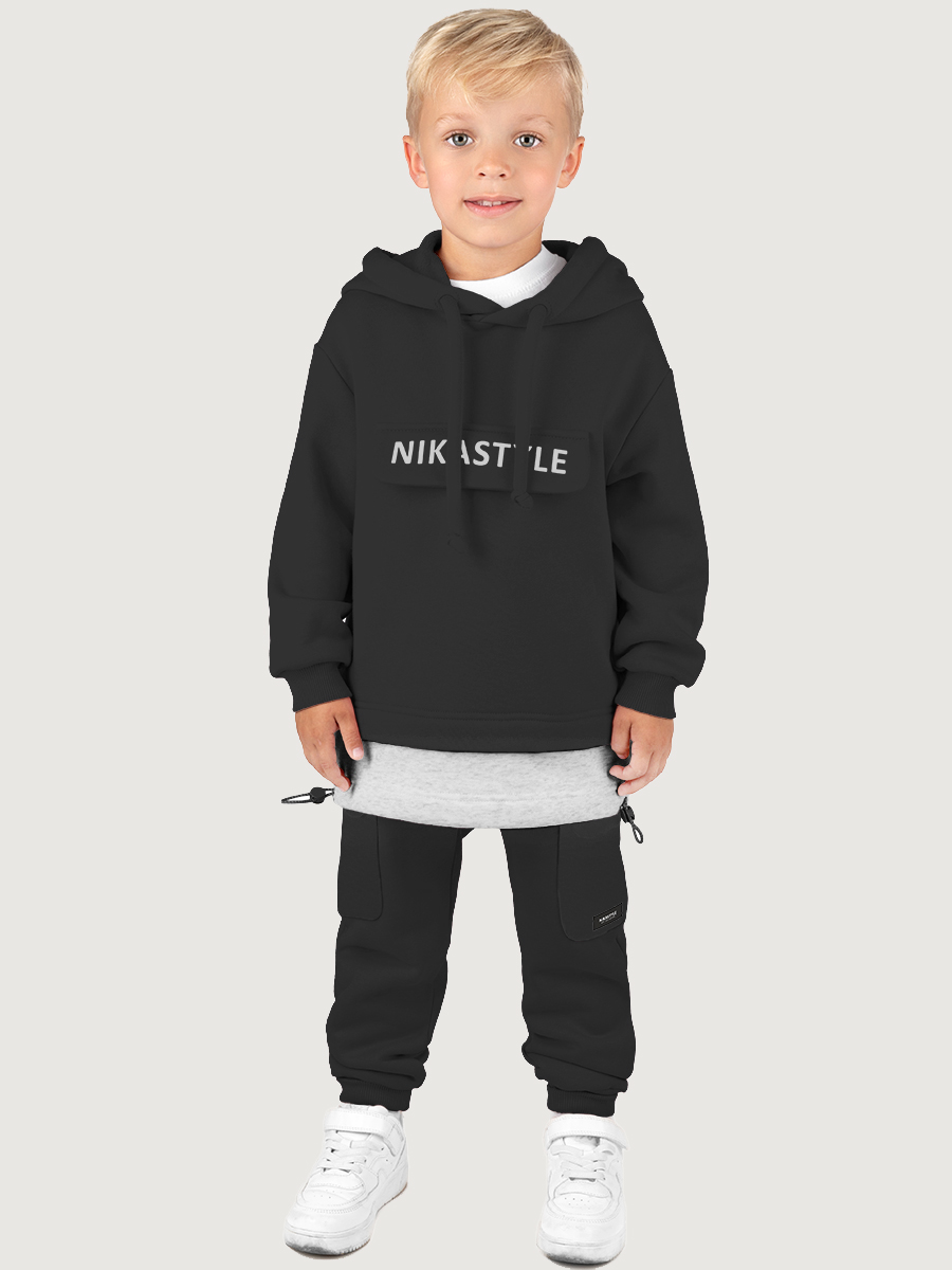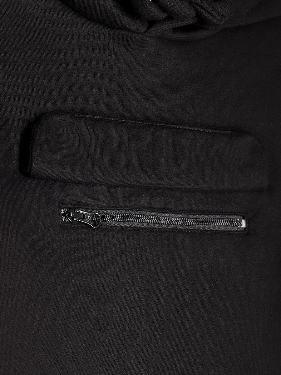 Костюм ХИП-ХОП из плотного хлопкового трикотажа с мягким стриженным начесом внутри и с отделочными деталями из футера петля. Состоит из двух предметов — худи и брюк. Худи свободного силуэта, с объемным капюшоном, карманом на молнии под клапаном, кулисой по низу с регулировкой объема. Манжеты из трикотажного полотна «кашкорсе».