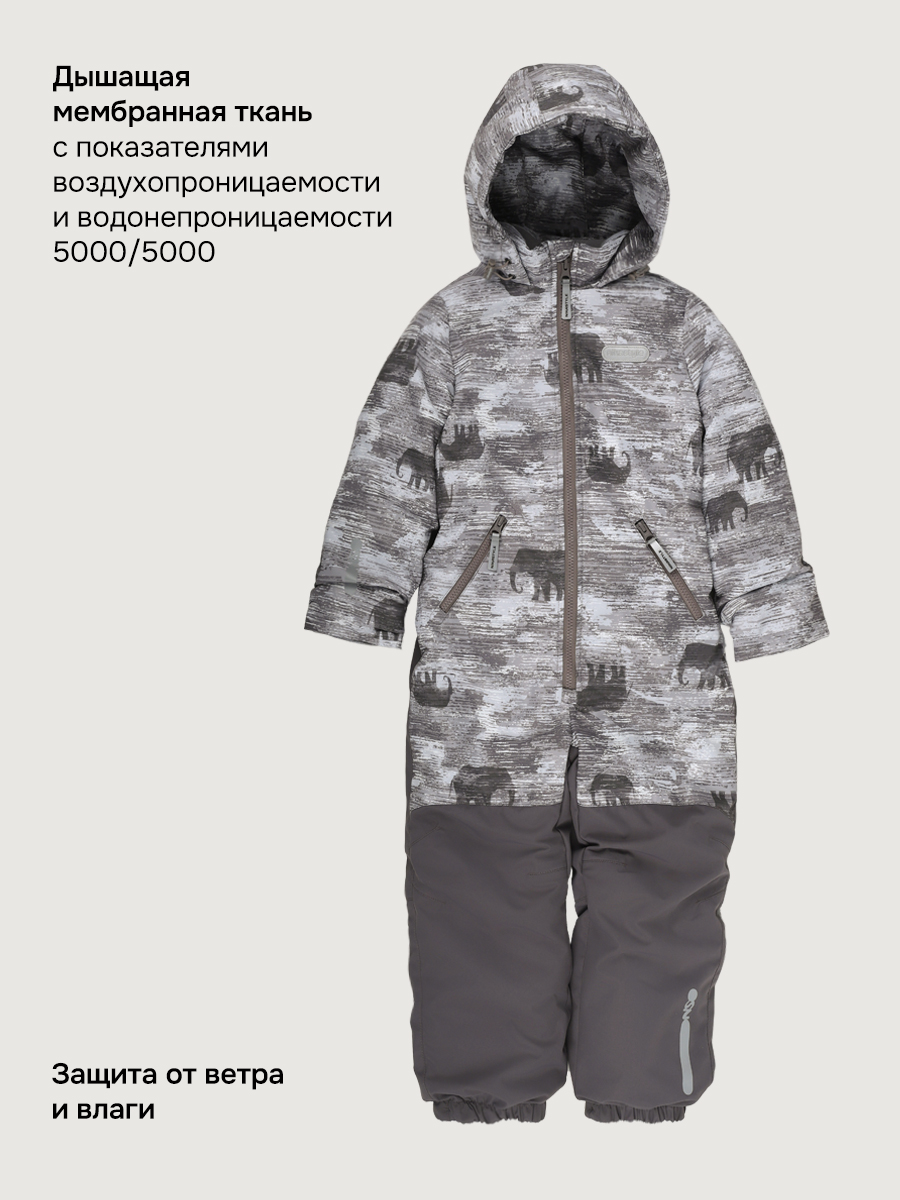 Мембранная ткань - это непродуваемый и водонепроницаемый материал, который надежно защитит от ветра и влаги. Благодаря дышащим свойствам мембраны ребенку будет комфортно в любую погоду, и он не вспотеет.