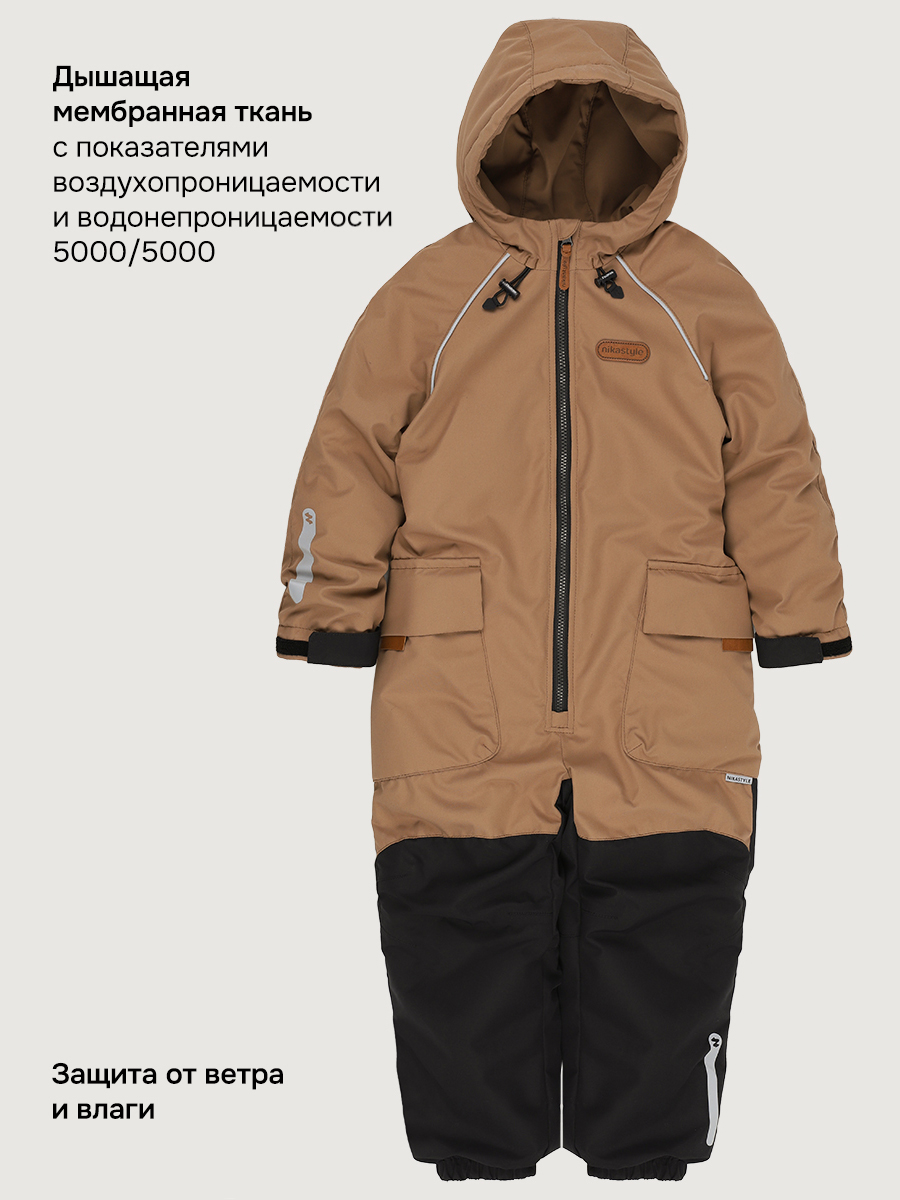 Мембранная ткань - это непродуваемый и водонепроницаемый материал, который надежно защитит от ветра и влаги. Благодаря дышащим свойствам мембраны ребенку будет комфортно в любую погоду, и он не вспотеет.