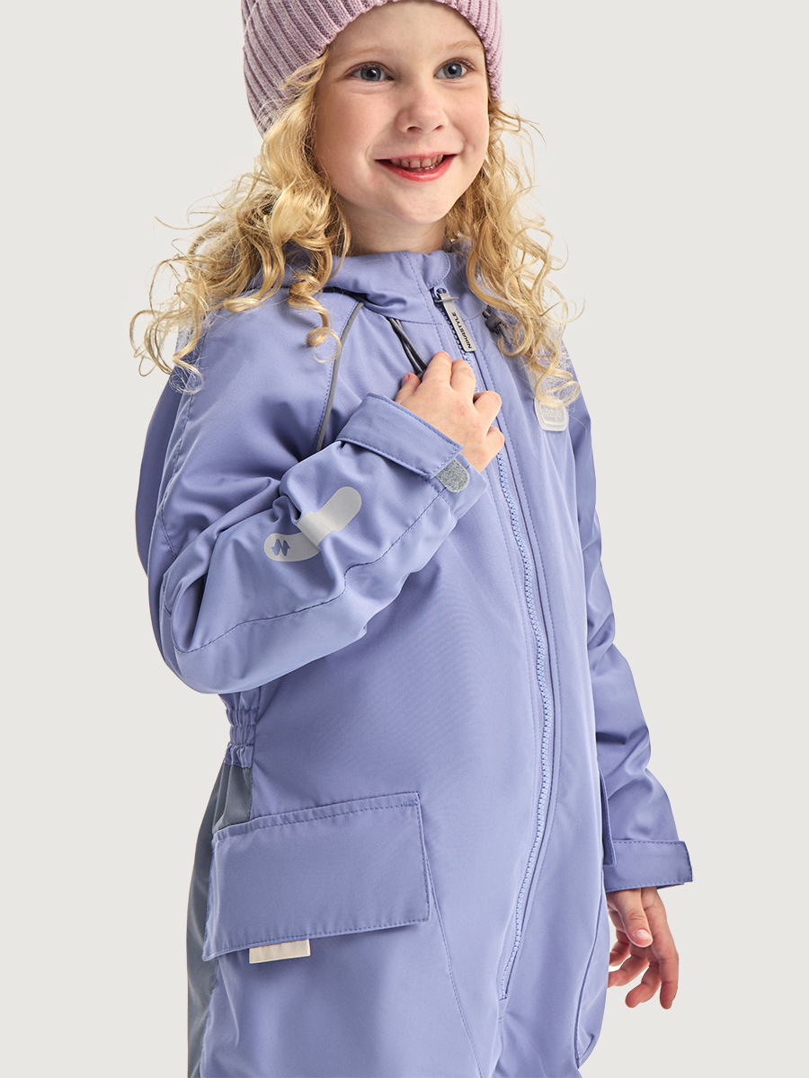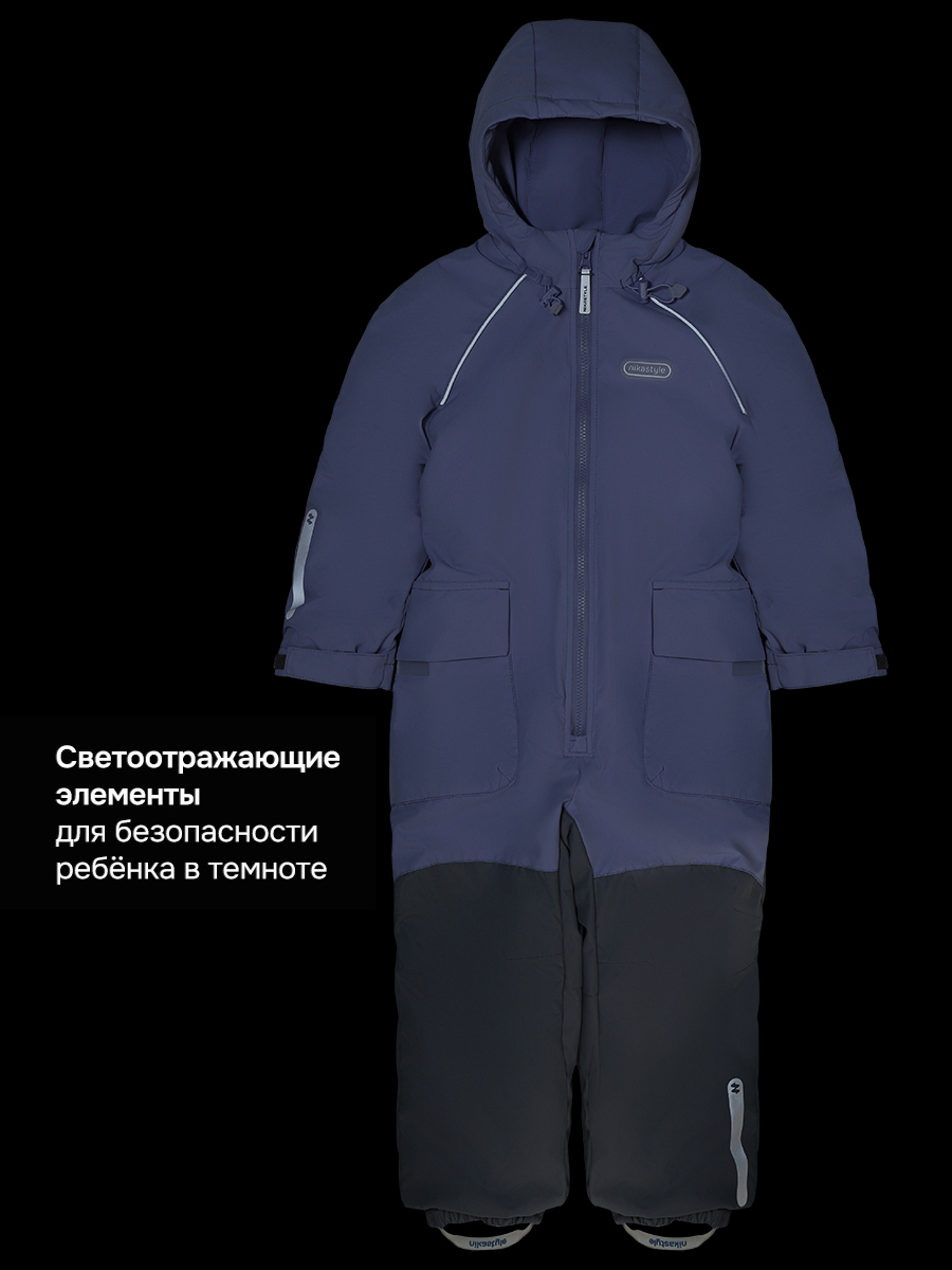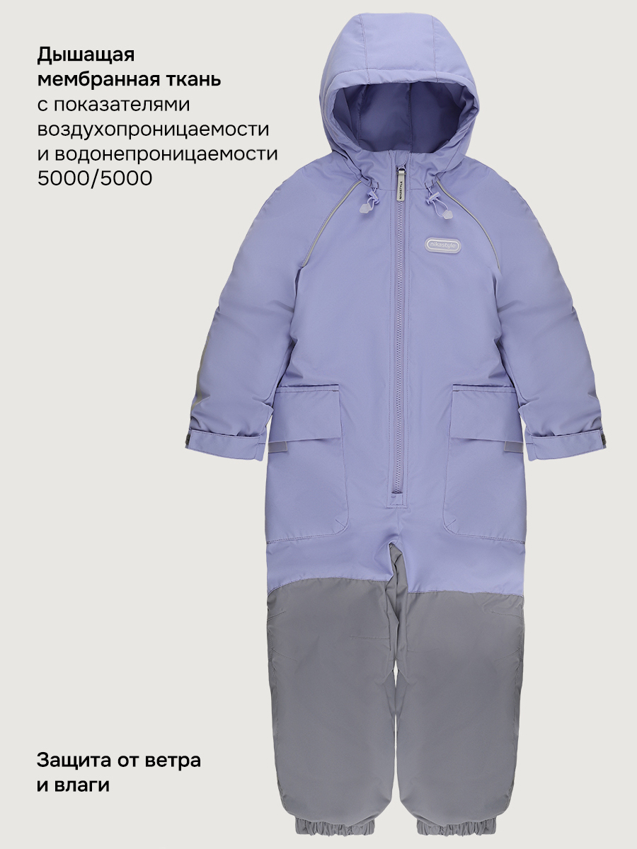 Мембранная ткань - это непродуваемый и водонепроницаемый материал, который надежно защитит от ветра и влаги. Благодаря дышащим свойствам мембраны ребенку будет комфортно в любую погоду, и он не вспотеет.