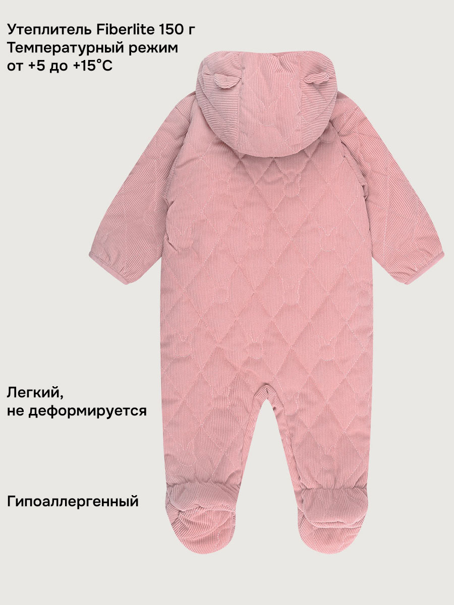Комбинезон МАФФИН для самых маленьких из стеганного микровельвета премиум качества. Микровельвет - это мягкая, бархатистая ткань в тонкий рубчик. Микровельвет с утеплителем обеспечивает тепло в прохладные дни, а в теплые - не создает дискомфорта. Хлопковая подкладка обеспечит повышенный комфорт для ребенка.