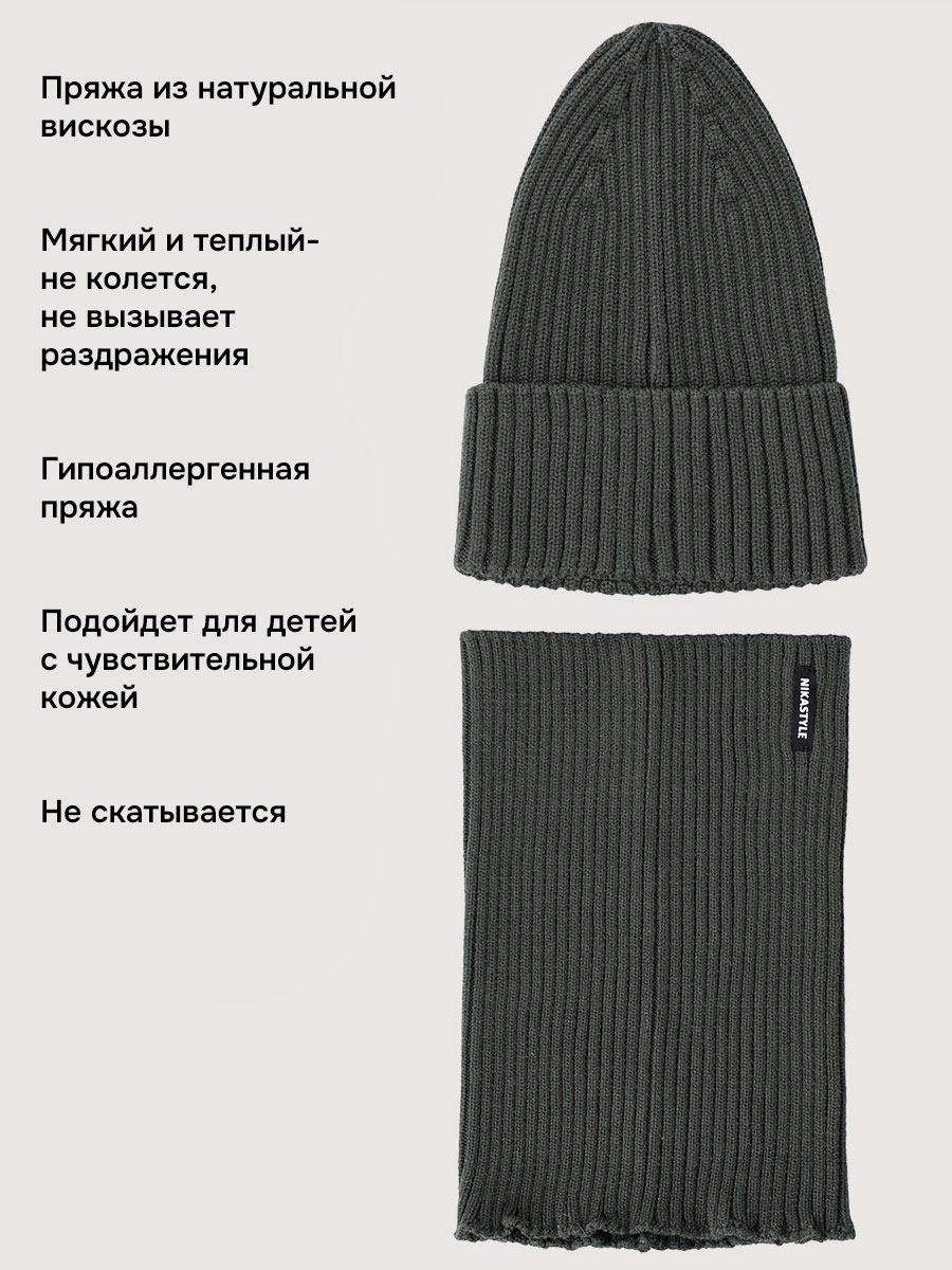 Комплект шапка и снуд 12м21526 хаки