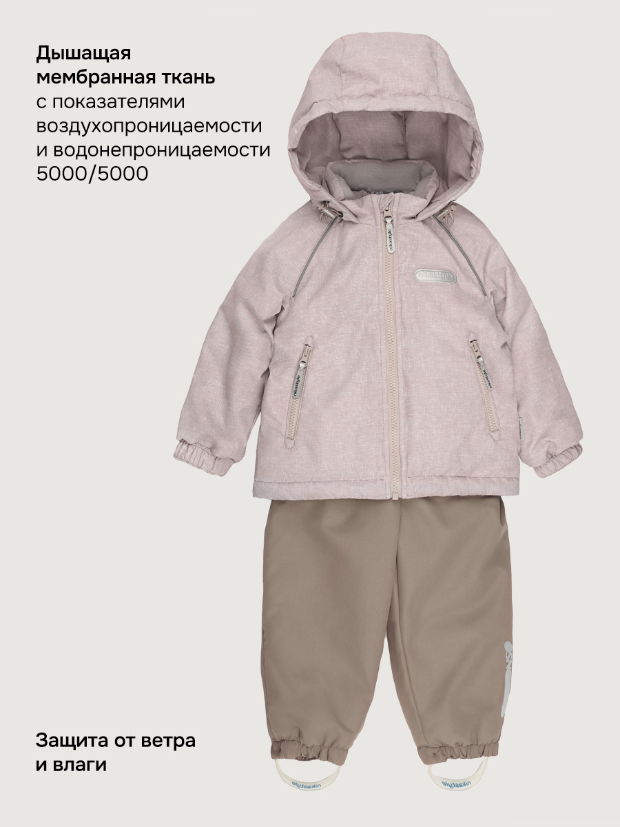 Мембранная ткань - это непродуваемый и водонепроницаемый материал, который надежно защищает от ветра и влаги. Благодаря дышащим свойствам мембраны ребенку будет комфортно в любую погоду и он не вспотеет.