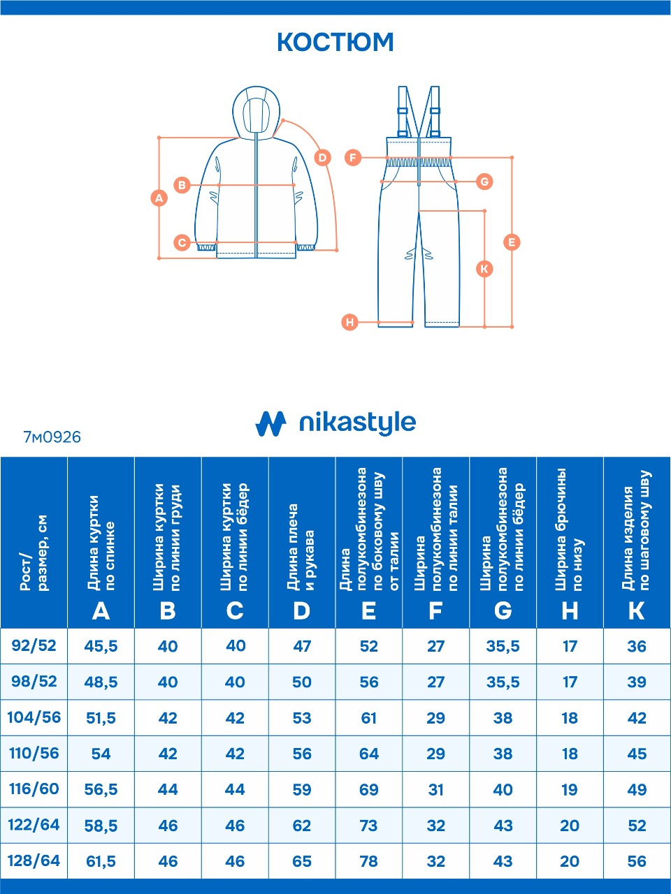 Размеры (куртка+комбинезон) —128-64