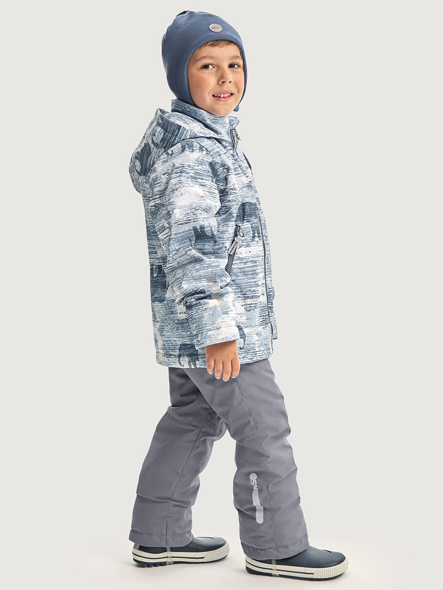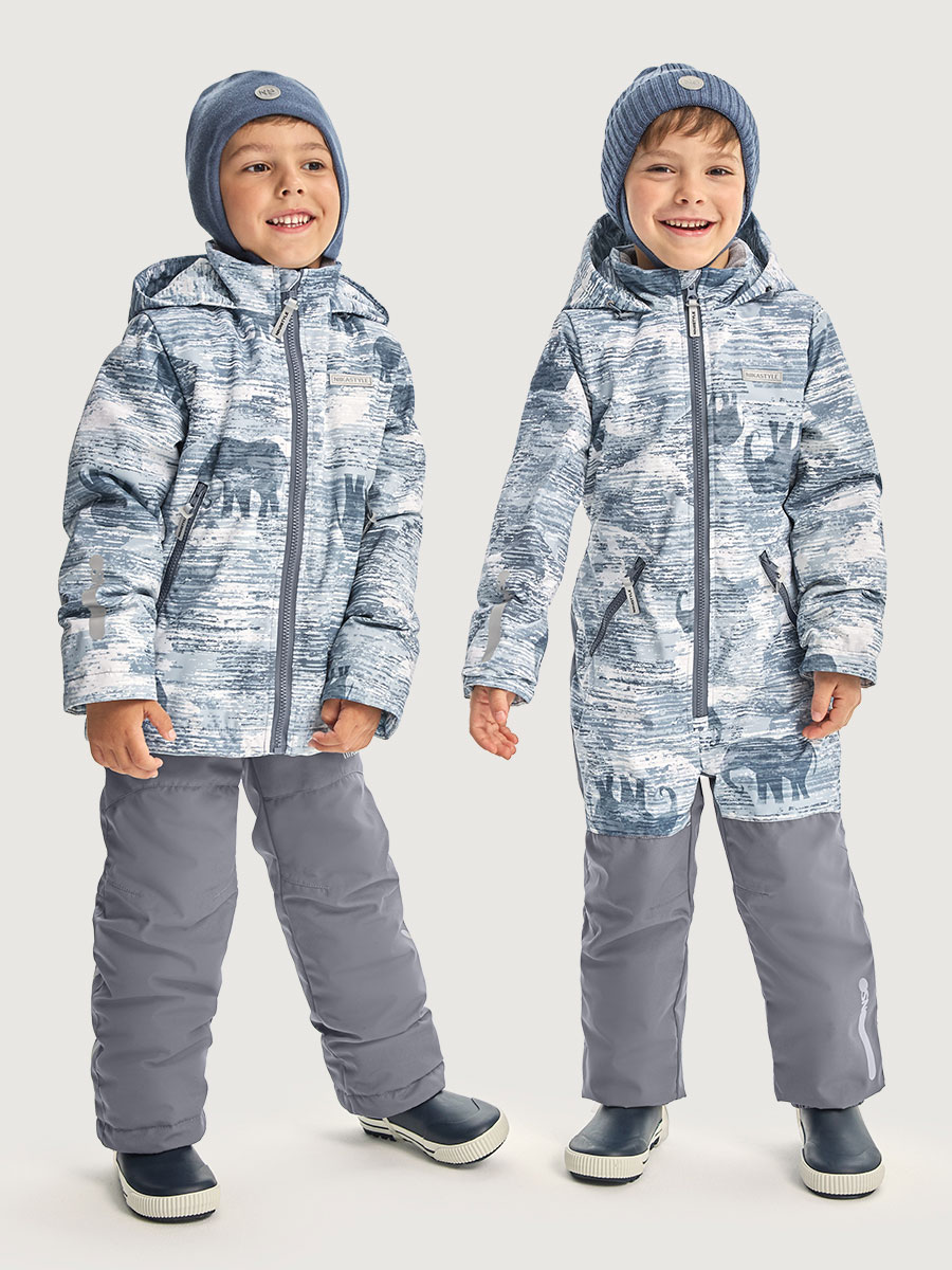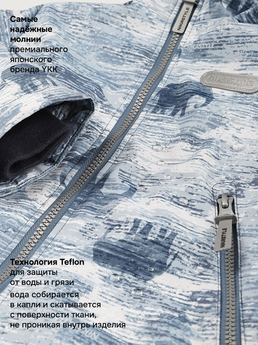 Мембранная ткань - это непродуваемый и водонепроницаемый материал, который надежно защищает от ветра и влаги. Благодаря дышащим свойствам мембраны ребенку будет комфортно в любую погоду и он не вспотеет. Ткань обработана снаружи экологически чистым протектором TEFLON для защиты от воды и грязи .
