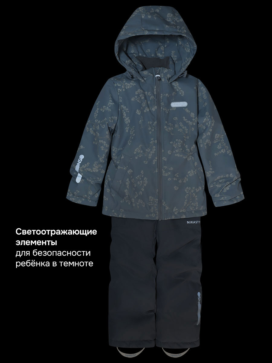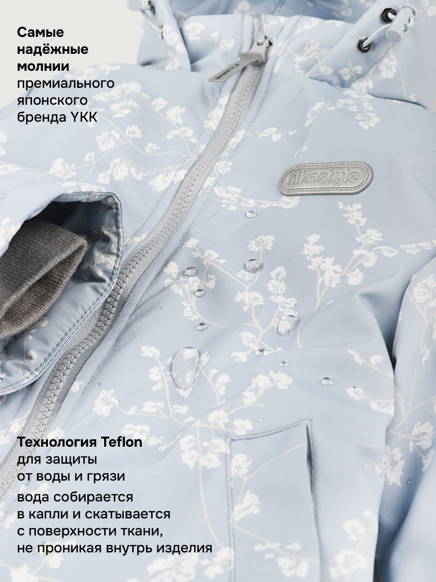 Мембранная ткань - это непродуваемый и водонепроницаемый материал, который надежно защищает от ветра и влаги. Благодаря дышащим свойствам мембраны ребенку будет комфортно в любую погоду и он не вспотеет. Ткань обработана снаружи экологически чистым протектором TEFLON для защиты от воды и грязи.