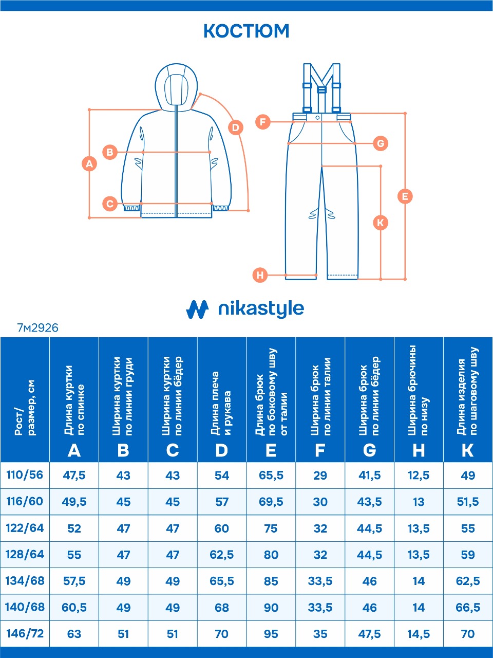 В костюме предусмотрена СИСТЕМА РОСТА. Удлинить рукава и штанины можно, удалив строчку на подкладке и костюм подрастет вместе с ребенком.