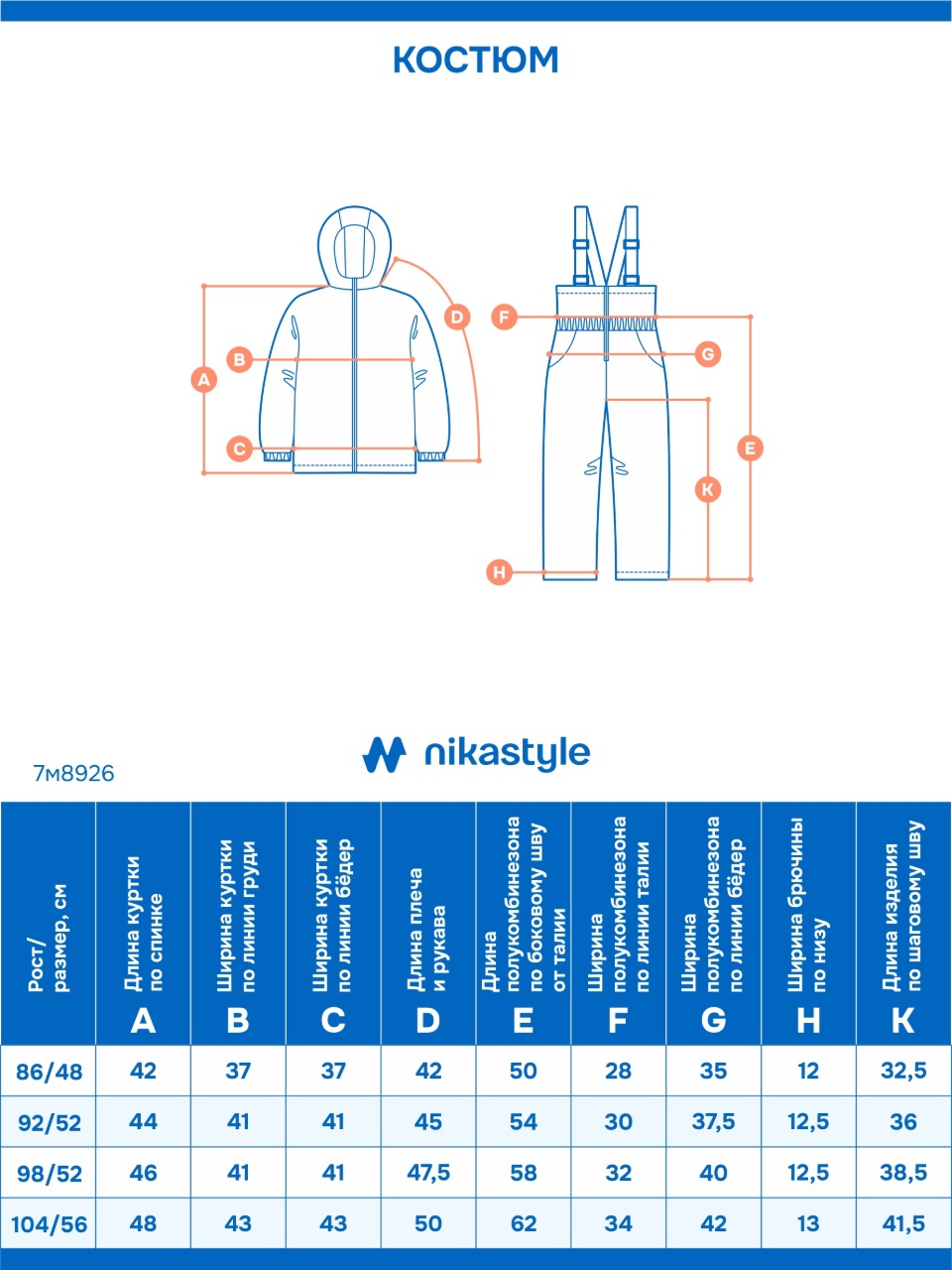 Размеры (куртка+комбинезон) —104-56