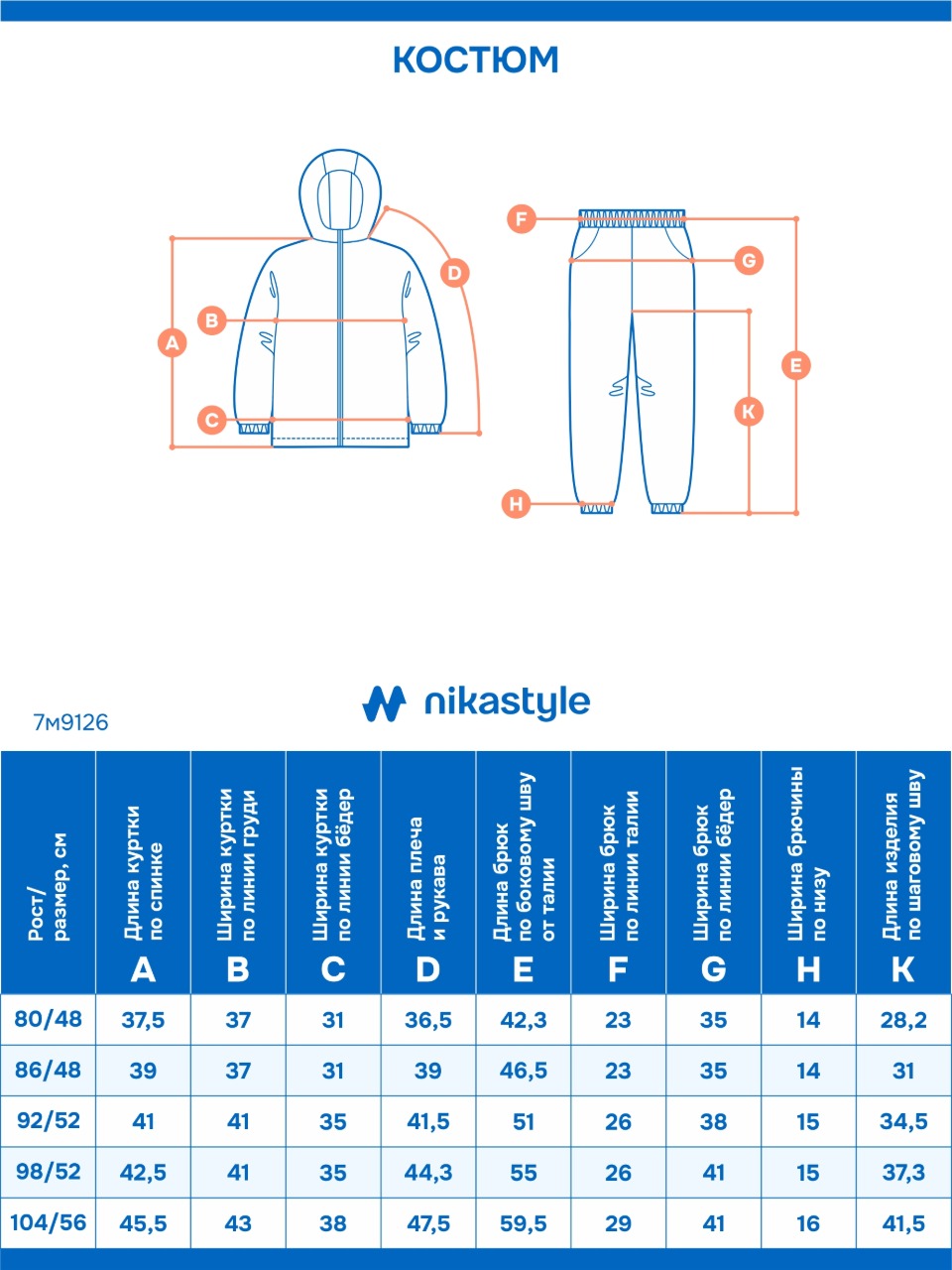Размеры (куртка+комбинезон) —104-56
