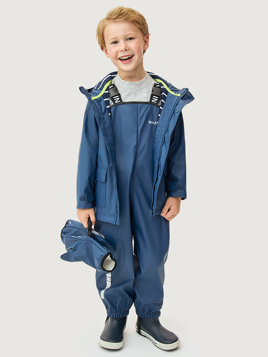 Непромокаемый полукомбинезон NO RAIN с проклеенными водонепроницаемыми швами надевается поверх верхней одежды для защиты ребенка от влаги. Подкладки не имеет. Прорезиненный материал ткани на хлопковой основе обладает эластичностью, упругостью и прочностью, его смесь с хлопком придает большую мягкость ткани. Водонепроницаемый, легкий, прочный материал, обеспечивает сухость, чистоту и комфорт для ребенка. Незаменимая вещь для практичных родителей и их непоседливых малышей. Свободный покрой позволяет легко надевать его на верхнюю одежду. Регулируемые штрипки и резинка по низу брюк позволяют надевать полукомбинезон поверх обуви. Наличие светоотражающих элементов для безопасности ребенка в темное время суток. Комфортная температура эксплуатации от -5 до +10 С.