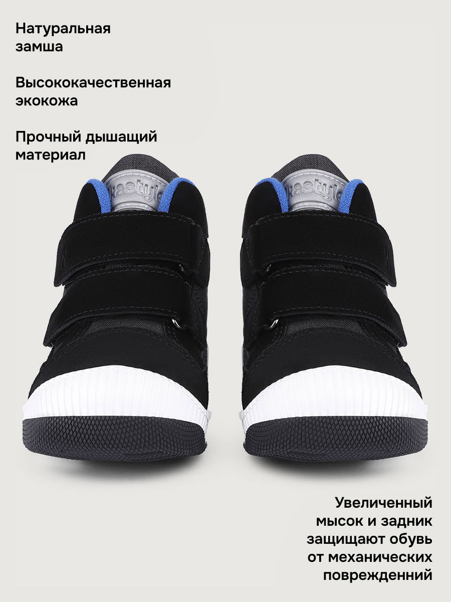 Стильная модель ботинок от бренда NIKASTYLE КРОССЫ для любой осенне-весенней погоды. Ботинки изготовлены из прочных и качественных материалов: натуральная замша и высококачественный текстиль. Легкие «дышащие» ботинки с прочным увеличенным мыском и задником для активных прогулок детей.