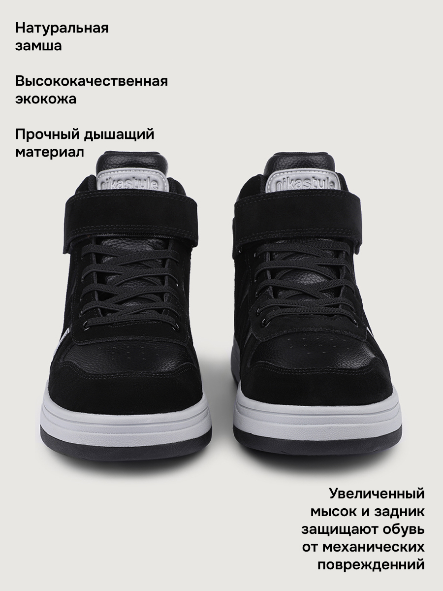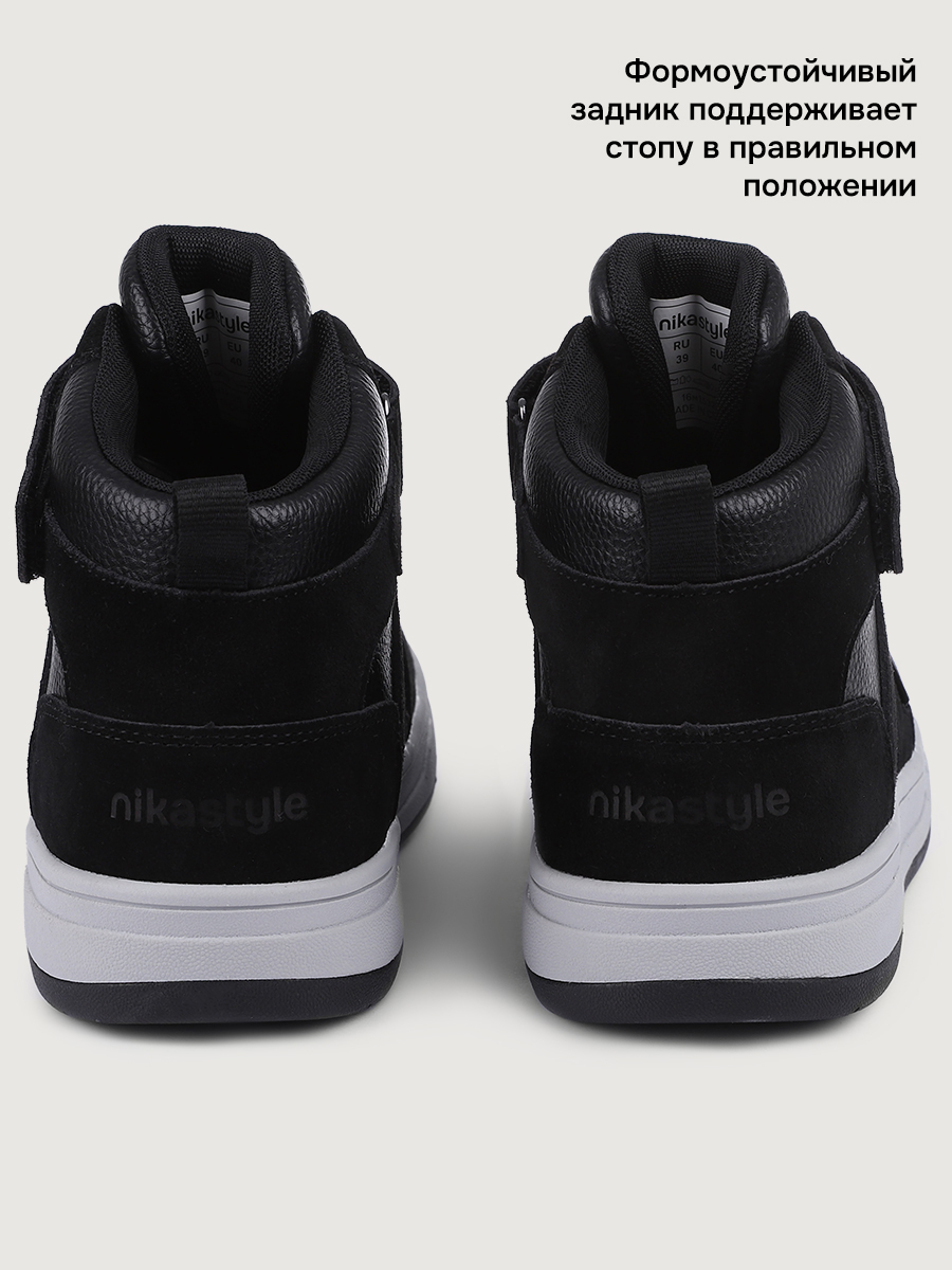 Стильная модель ботинок от бренда NIKASTYLE СНИКЕРЫ для любой осенне-весенней погоды. Ботинки изготовлены из прочных и качественных материалов: натуральная замша и высококачественная экокожа - гипоаллергенный и воздухопроницаемый материал. Технология WATERPROOF с использованием мембранных материалов, которые не пропускают влагу внутрь обуви, но позволяют ногам дышать и подойдут для влажной и слякотной погоды. Внутренняя подкладка обеспечивает тепло и комфорт, что особенно актуально в холодное время года. Анатомическая форма стельки способствует правильному формированию свода стопы, равномерно распределяет нагрузку, уменьшает усталость, обеспечивает правильное развитие стоп. Липучка и эластичные шнурки позволяют точно настроить полноту и обеспечивают легкое одевание. Ботинки имеют спортивный дизайн, что делает их универсальными для школы и спортивных мероприятий. Подошва с протектором выполнена из термопластичной резины (TPR), обладает высокой износостойкостью и хорошей амортизацией, уменьшая нагрузку на ноги.