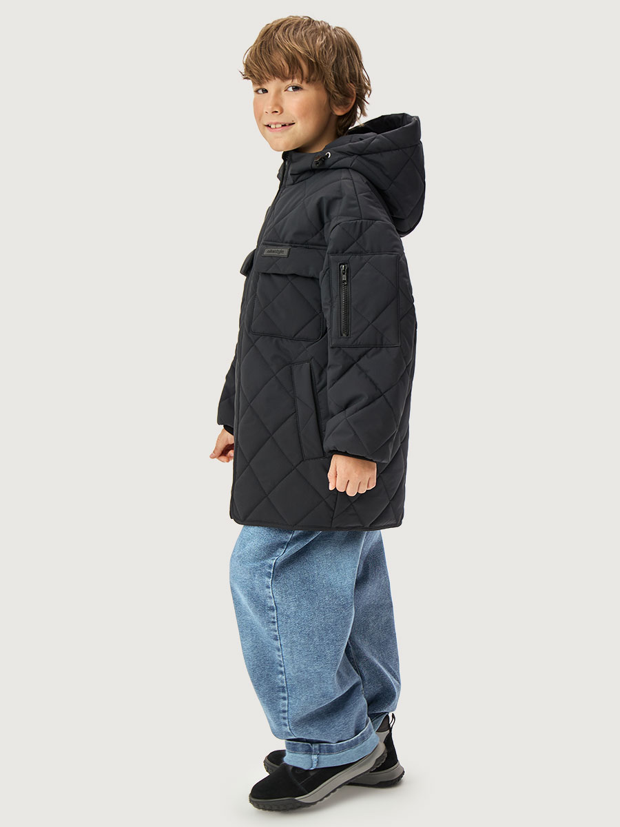 Удлиненная куртка УРБАН из стеганной мембранной ткани 5000/5000. Мембранная ткань - это непродуваемый и водонепроницаемый материал, который надежно защищает от ветра и влаги. Благодаря дышащим свойствам мембраны ребенку будет комфортно в любую погоду, и он не вспотеет. Мембрана в сочетании с утеплителем сохраняет тепло во время прогулок, позволяя телу дышать.
