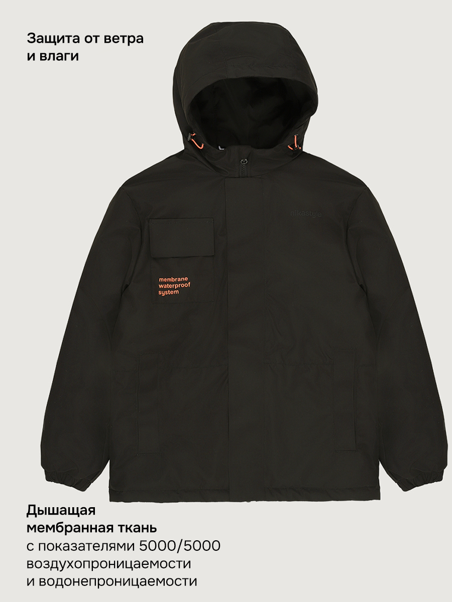 - внутренний карман на молнии, капюшон с кулисой для регулировки объема.