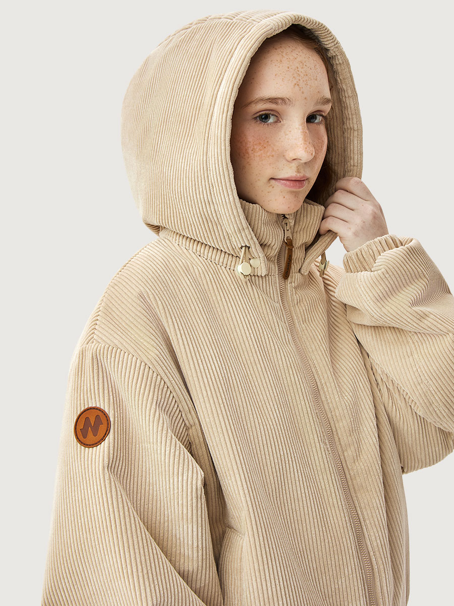 Куртка ОВЕР из вельветовой ткани на мембране 5000/5000. Мембранная ткань - это непродуваемый и водонепроницаемый материал, который надежно защищает от ветра и влаги. Благодаря дышащим свойствам мембраны ребенку будет комфортно в любую погоду, и он не вспотеет. С лицевой стороны ткань с бархатистой мягкой структурой в рубчик. Мембрана в сочетании с утеплителем нового поколения FIBERlite сохраняет тепло во время прогулок, позволяя телу дышать. Хлопковая подкладка обеспечит повышенный комфорт для ребенка.