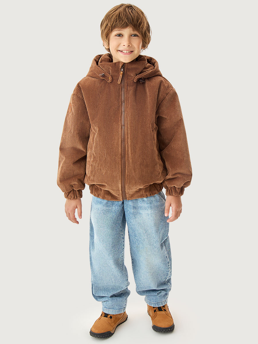 Куртка ОВЕР из вельветовой ткани на мембране 5000/5000. Мембранная ткань - это непродуваемый и водонепроницаемый материал, который надежно защищает от ветра и влаги. Благодаря дышащим свойствам мембраны ребенку будет комфортно в любую погоду, и он не вспотеет. С лицевой стороны ткань с бархатистой мягкой структурой в рубчик. Мембрана в сочетании с утеплителем нового поколения FIBERlite сохраняет тепло во время прогулок, позволяя телу дышать. Хлопковая подкладка обеспечит повышенный комфорт для ребенка.