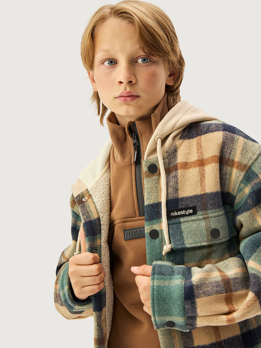 Куртка-рубашка КАМПУС в клетку из пальтовой ткани дублированной мехом. Пальтовая ткань с мягкой ворсистой фактурой, приятная на ощупь. Мех-барашек с изнаночной стороны обеспечивает защиту от холода и дарит ощущение тепла и уюта. Свободный прямой крой со спущенной линией плеча не сковывает движение и создает максимальный комфорт в носке.