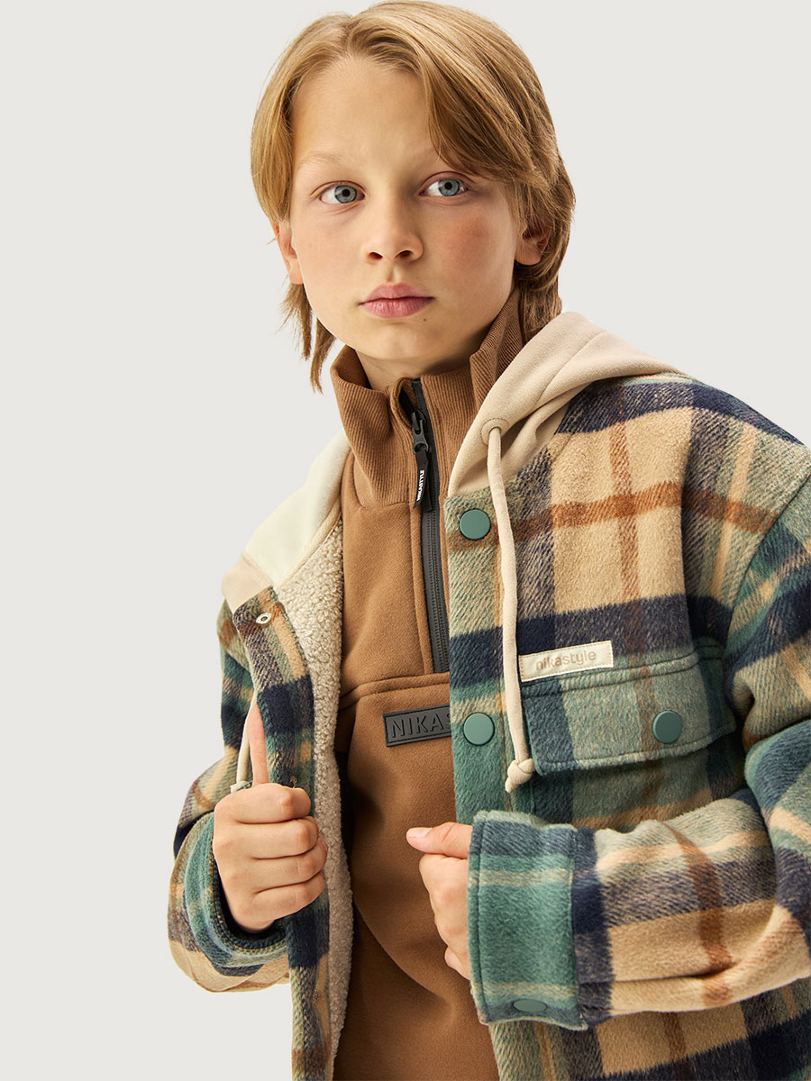 Куртка-рубашка КАМПУС в клетку из пальтовой ткани дублированной мехом. Пальтовая ткань с мягкой ворсистой фактурой, приятная на ощупь. Мех-барашек с изнаночной стороны обеспечивает защиту от холода и дарит ощущение тепла и уюта. Свободный прямой крой со спущенной линией плеча не сковывает движение и создает максимальный комфорт в носке.