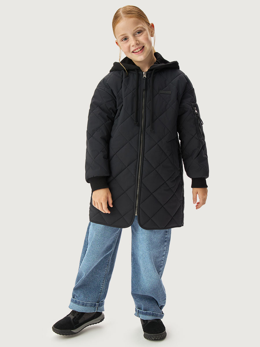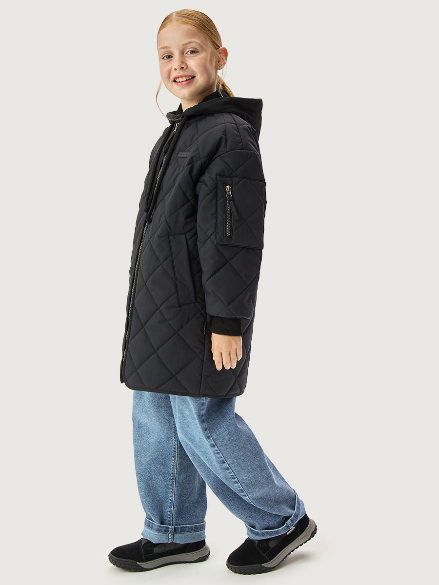 Удлиненная куртка ЛАЙК из стеганной мембранной ткани 5000/5000. Мембранная ткань - это непродуваемый и водонепроницаемый материал, который надежно защищает от ветра и влаги. Благодаря дышащим свойствам мембраны ребенку будет комфортно в любую погоду, и он не вспотеет. Мембрана в сочетании с утеплителем сохраняет тепло во время прогулок, позволяя телу дышать.