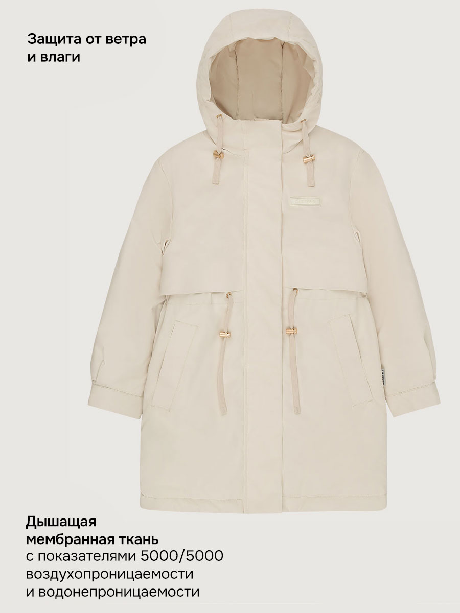 Парка КЕНДИ из мембранной ткани 5000/5000. Мембранная ткань - это непродуваемый и водонепроницаемый материал, который надежно защищает от ветра и влаги. Благодаря дышащим свойствам мембраны ребенку будет комфортно в любую погоду, и он не вспотеет. Мембрана в сочетании с утеплителем нового поколения FIBERlite сохраняет тепло во время прогулок, позволяя телу дышать. Флисовая подкладка отводит влагу и имеет хорошие теплоизоляционные свойства.