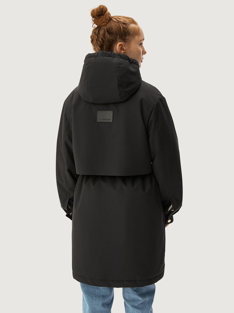 Мы все продумали до мелочей, поэтому у модели манжет рукава с застежкой на кнопки, кулиса по талии для регулировки объёма, внутренние бретели для возможности снять парку в помещении.